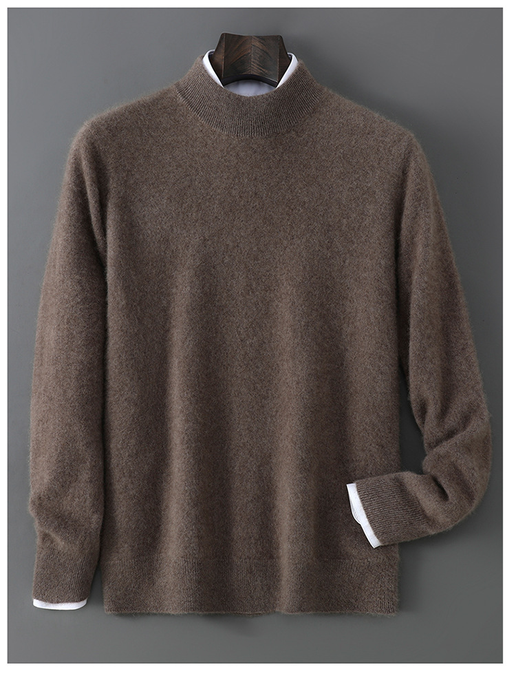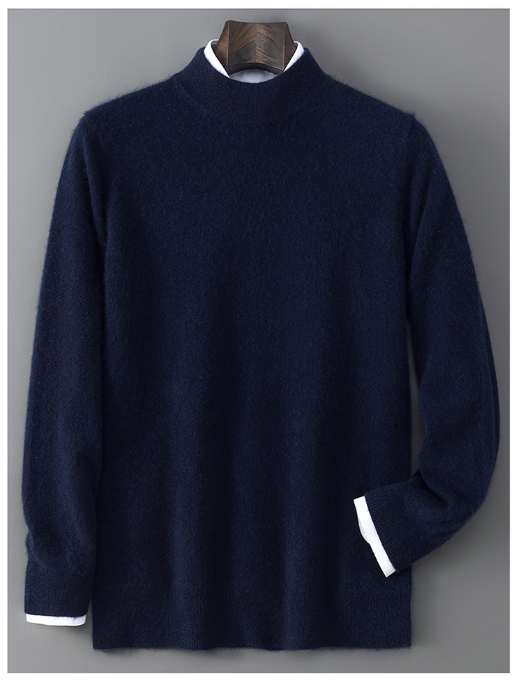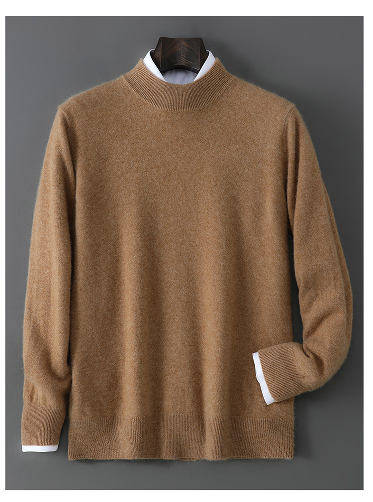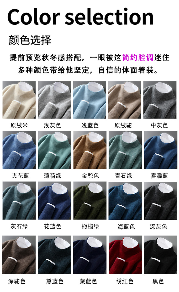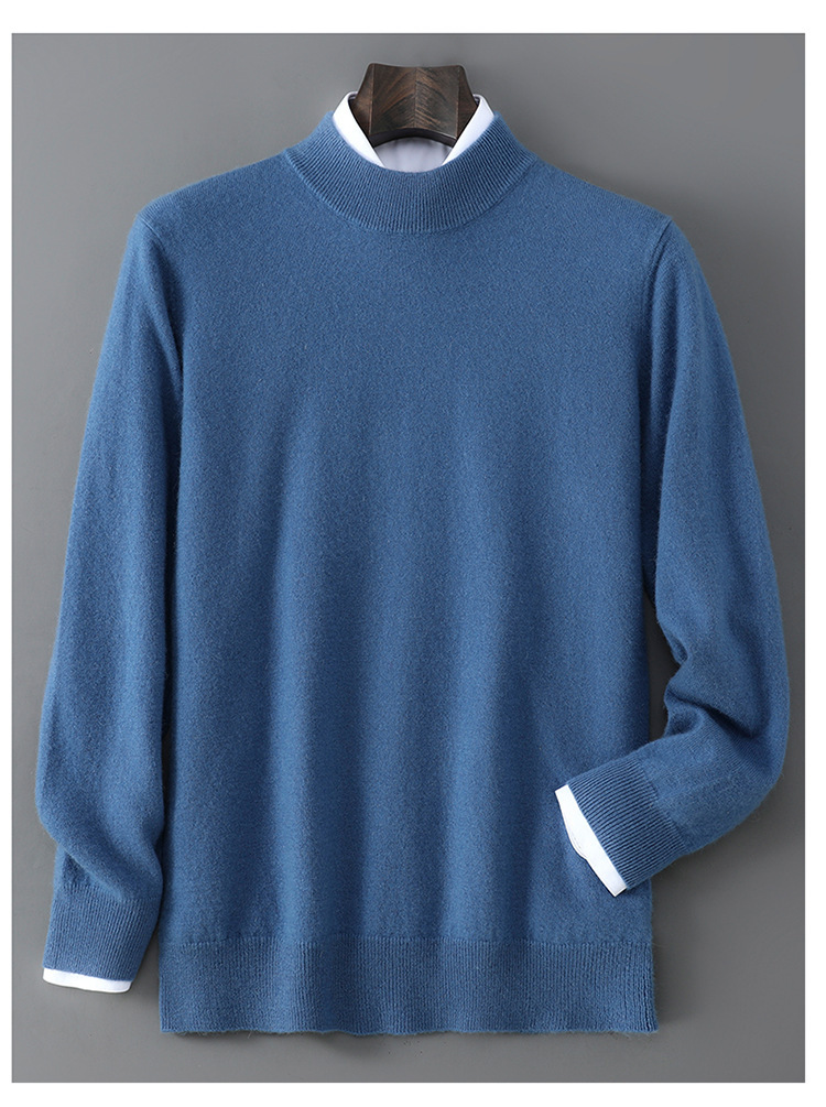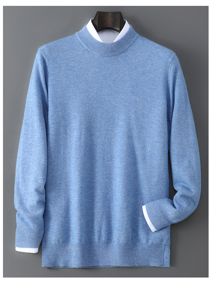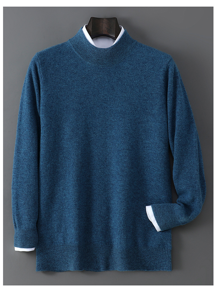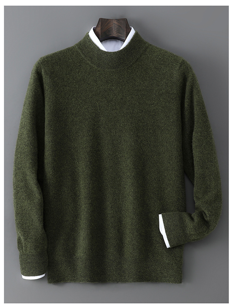 25 Новое 100% чистая шерсть свитер мужской полуполо вязаный свитер повседневный свободный базовый кашемировый свитер