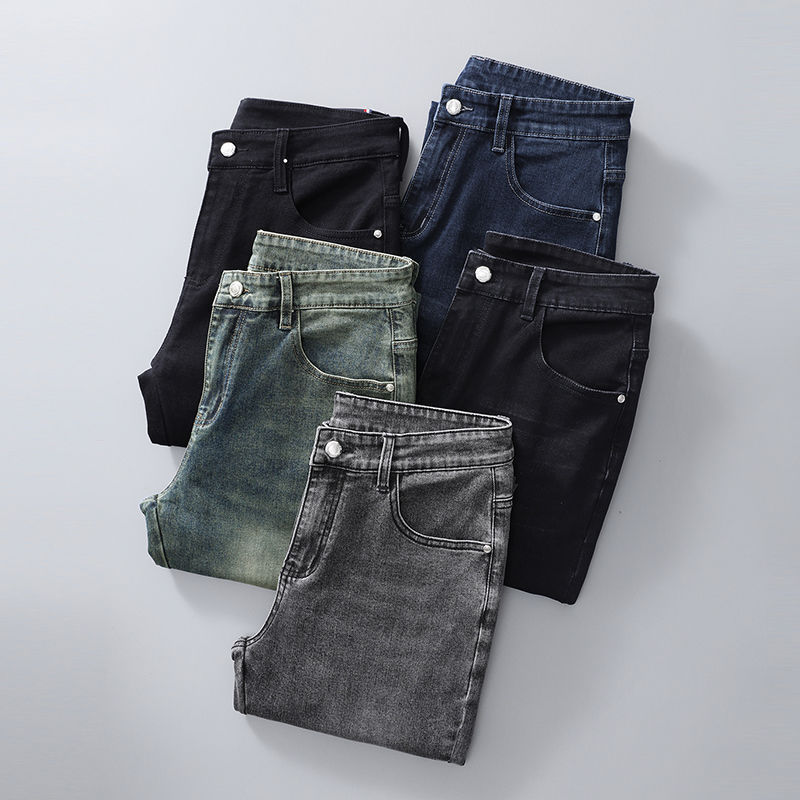 Новые мужские узкие джинсы 2025 года, модные, с эластичными вставками, корейский стиль, прямые длинные брюки