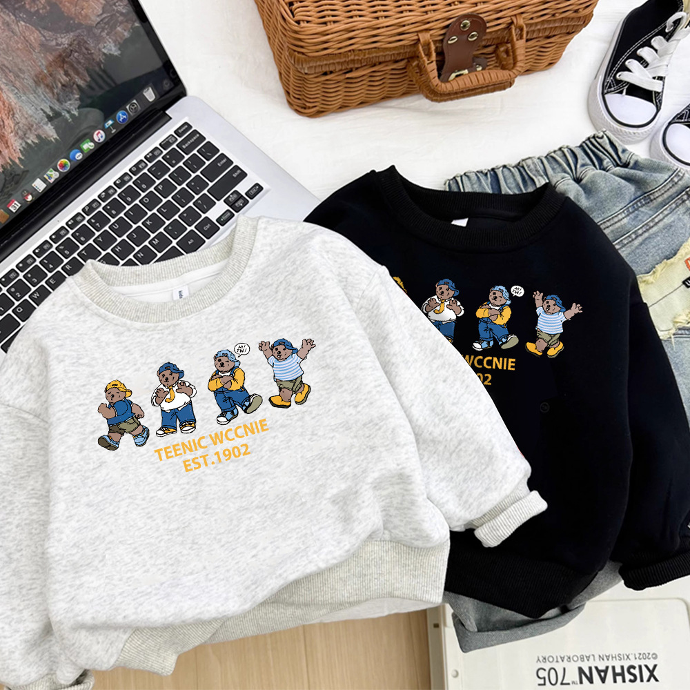 Толстовка с флисовой подкладкой унисекс для детей, новая модель осень-зима 2026, стильный мультфильм, повседневный универсальный топ