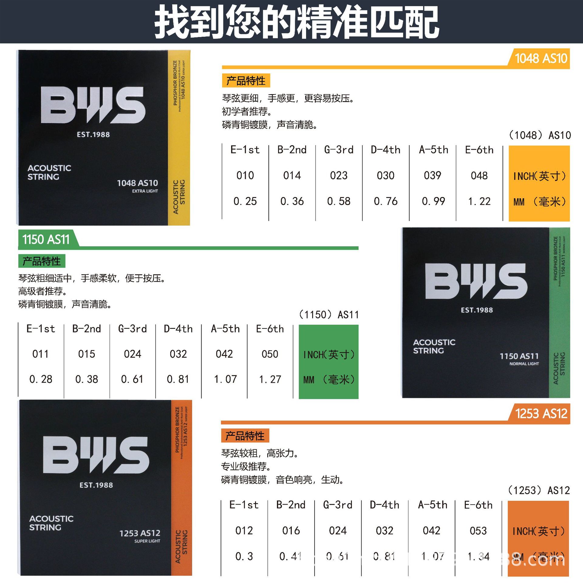 Струны Bws для народной акустической гитары, фосфорная медь, набор из 6 струн