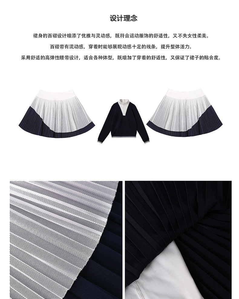 Осенний костюм для тенниса с воротником и молнией для женщин, контрастный повседневный топ, высокая талия, складки