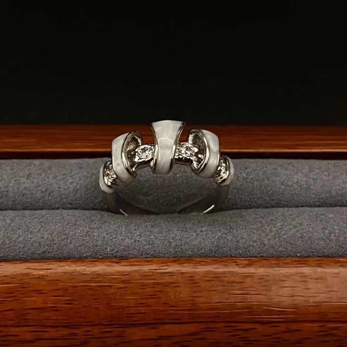 Винтажное Легкое Роскошное Высокое Качество Изогнутое Открытое Кольцо с Уникальным Нишевым Дизайном, Простое Классическое Минималистичное Геометрическое Кольцо