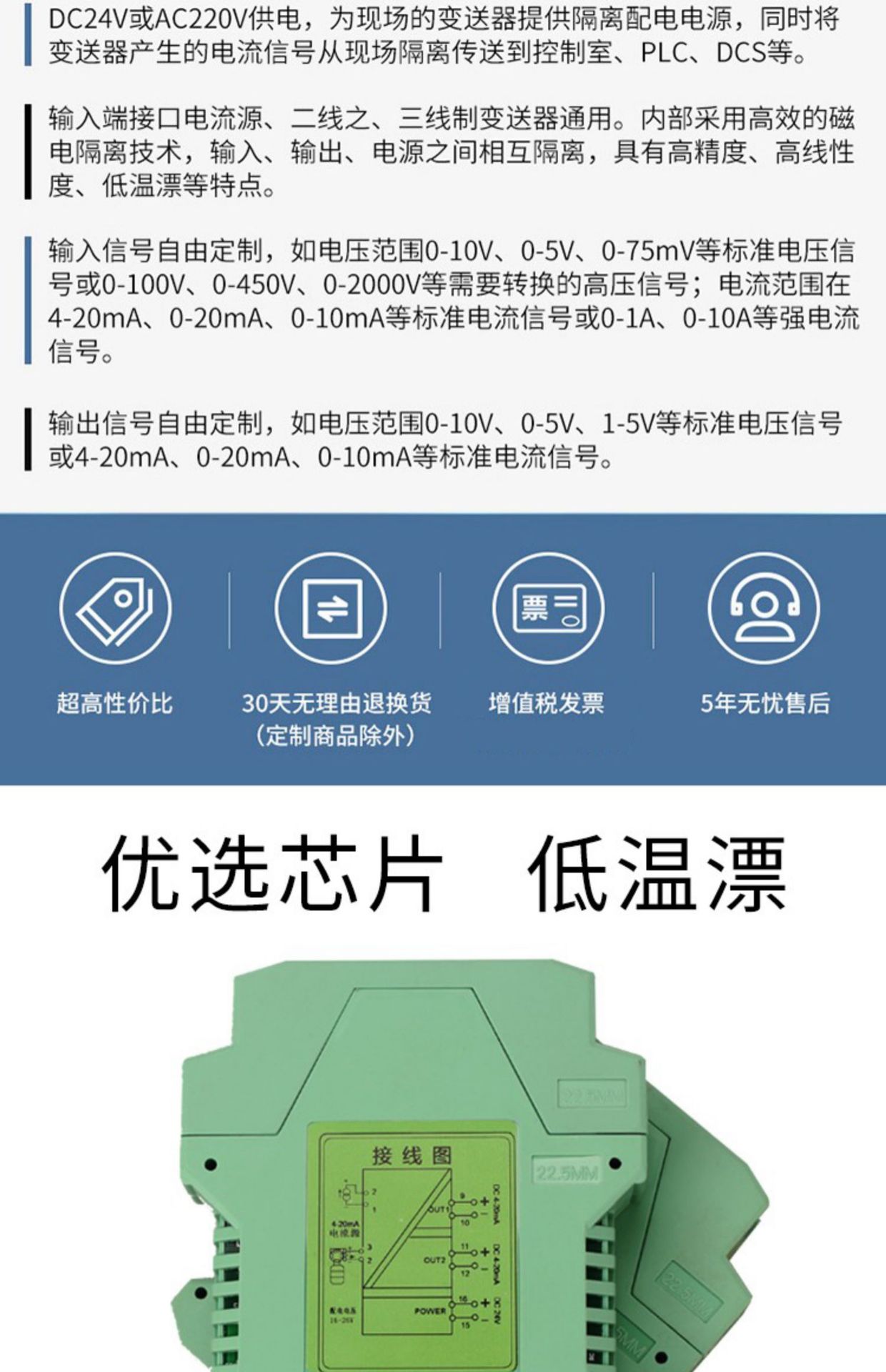 Изолятор сигнала, модуль преобразования постоянного тока и напряжения 4-20Ma, один вход и два выхода 0-10V