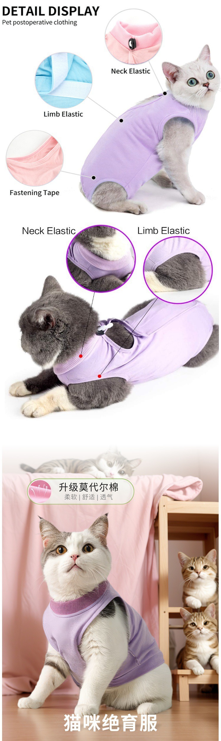Одежда для стерилизации кошек, 100% хлопок, хирургическая одежда для кошек, комфортная и дышащая послеоперационная одежда, предотвращающая лижку