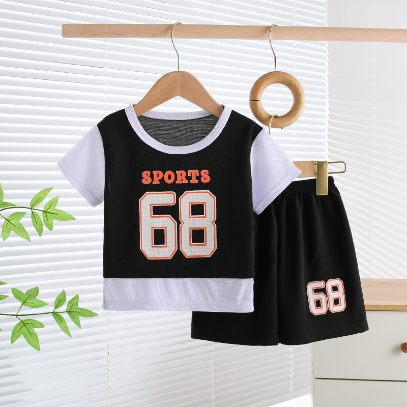 Мужской летний комплект из 2 предметов 2026 Новый детский летний спортивный костюм Стильный свободный костюм для мальчиков Опт