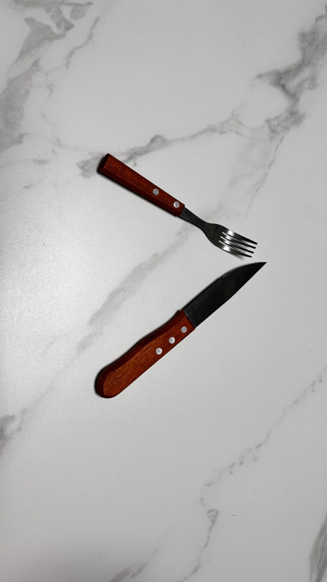 Нож для стейка из нержавеющей стали, набор ножей для стейка для отелей, 2 предмета, деревянная ручка, зубчатый нож для стейка, западная вилка