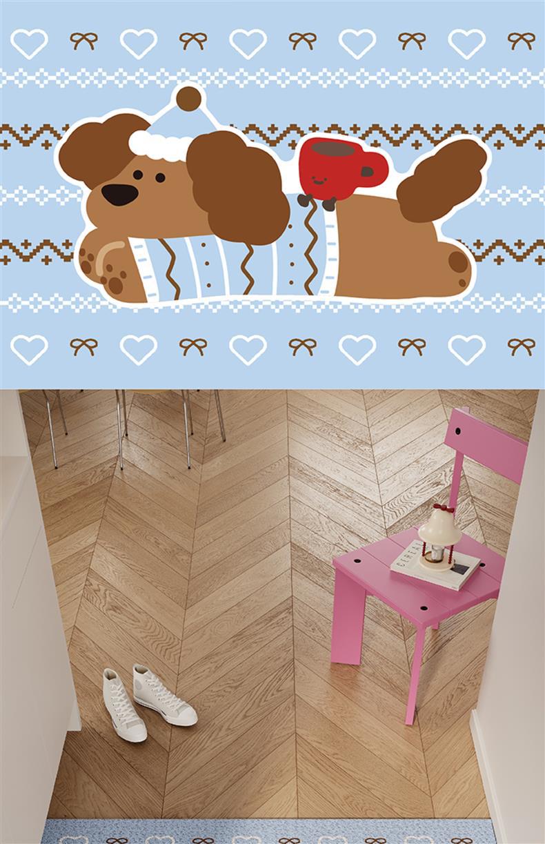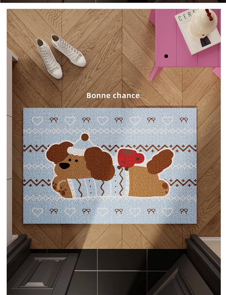 Коврик для входа с щенком в клетку, шелковый круг, красный, новогодний, нескользящий