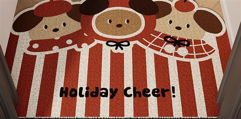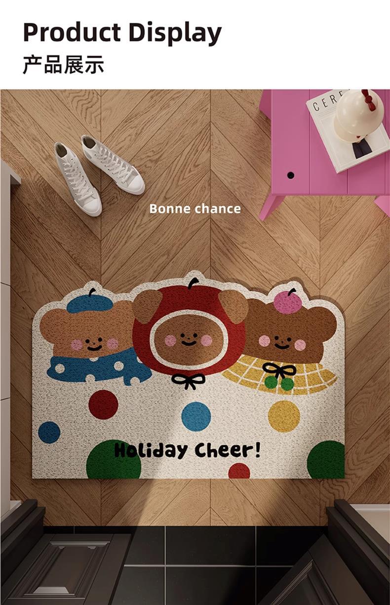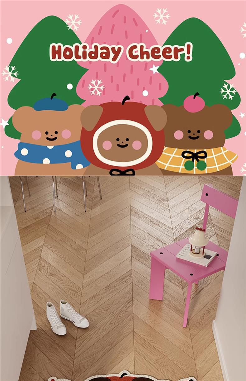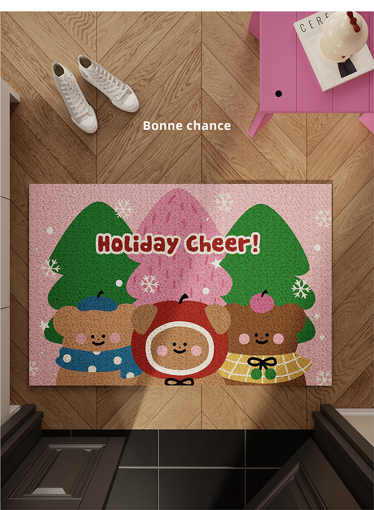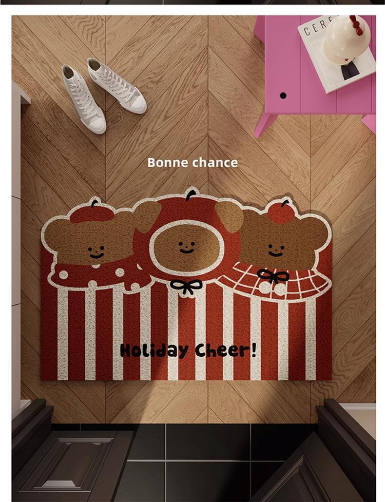 Коврик для входа с милым медведем и яблоком, шелковый круг, красный, новогодний, нескользящий