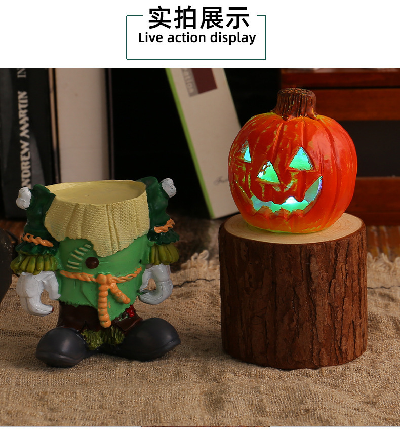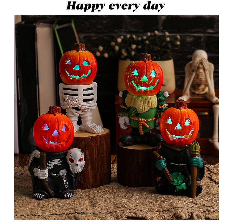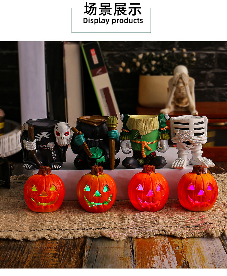 Хэллоуин светодиодные тыквенные рыцари настольные украшения светящиеся маленькие тыквы призрака из смолы для украшения двора