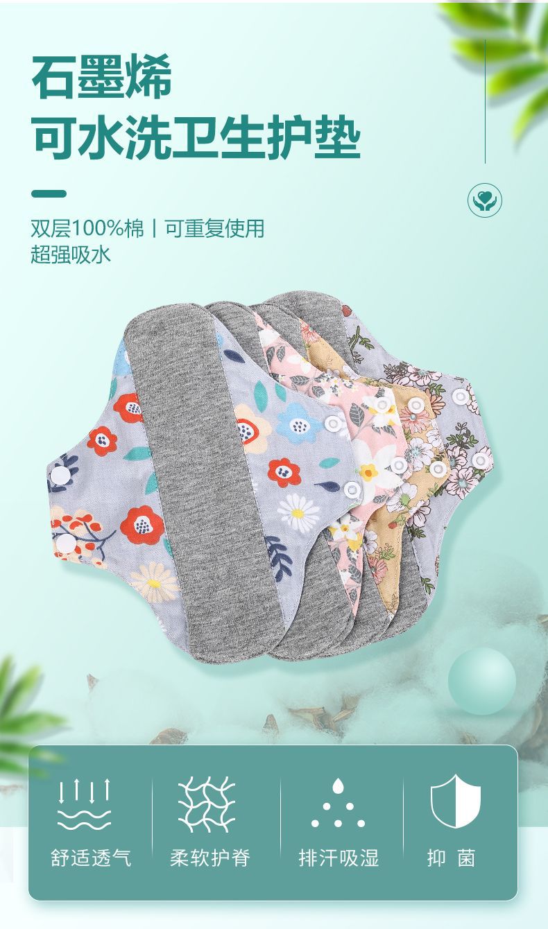 Графеновые Хлопковые Прокладки, Чистый Хлопок Многоразовые Гигиенические Прокладки, Специальные Прокладки для Предотвращения Утечек Мочи, Многоразовые