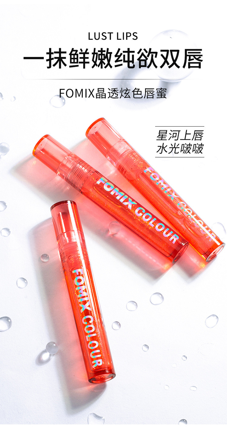 Fomix кристально чистый блеск для губ, водяной, зеркальный, пухлые губы, основа для губ, прозрачное масло для губ с мелким блеском