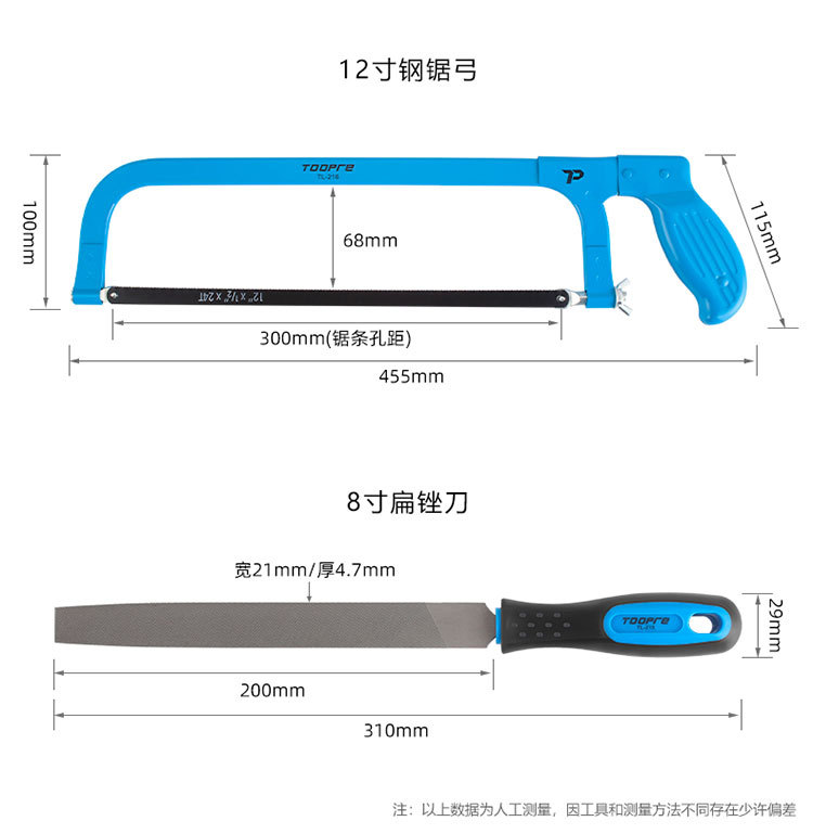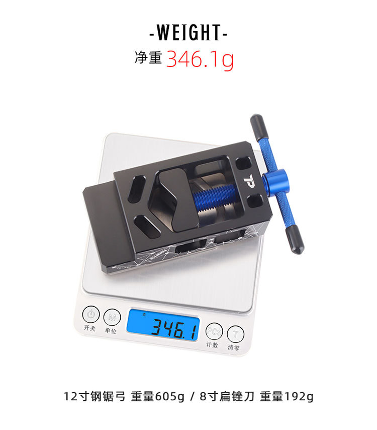 重量:截管固定器约397g,8寸扁锉刀约192g,12寸钢锯弓约605g。
