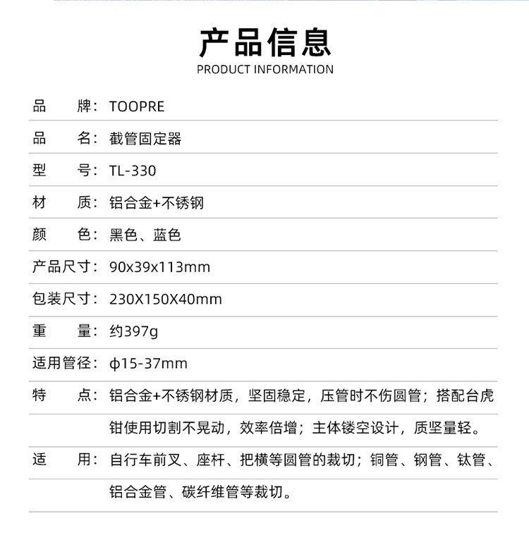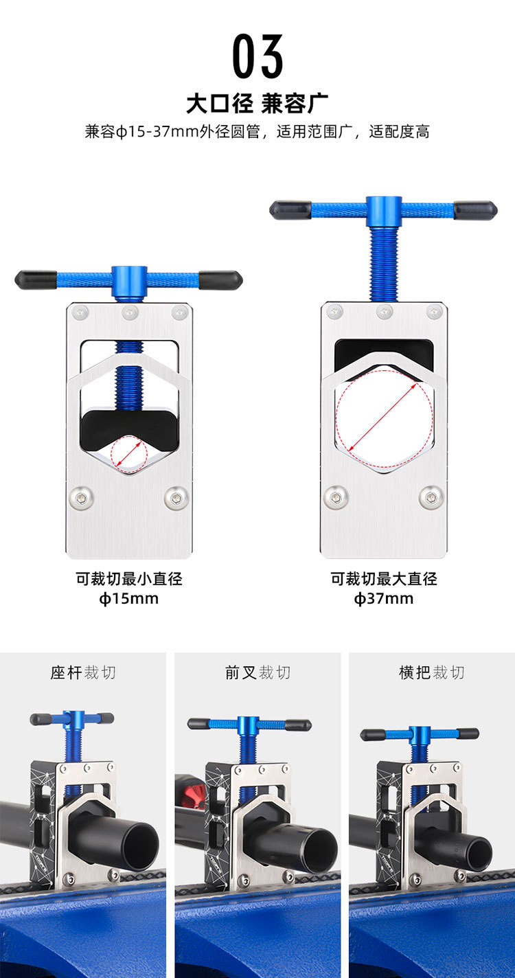 适用:自行车前叉、座杆、把横等,钢管、铁管、铝合金管、碳纤维等材质的裁切。