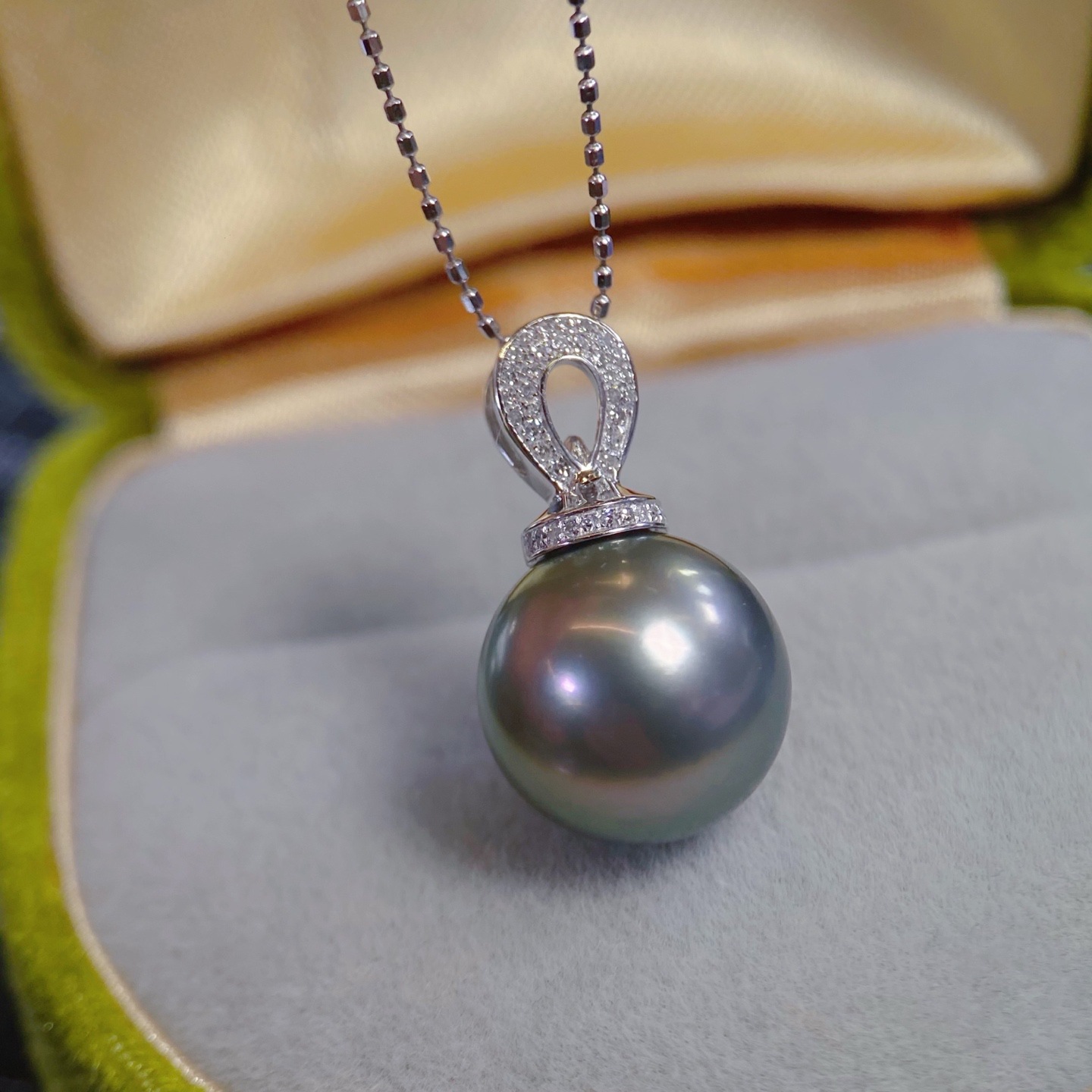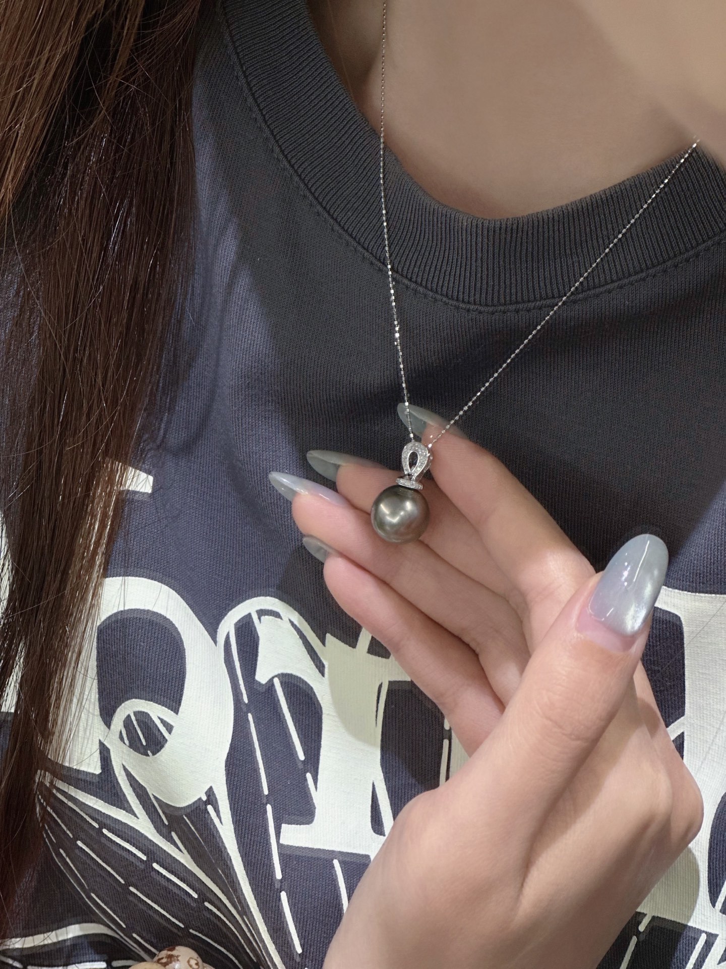 Аксессуары из платины Pt900 Кулон в форме капли воды с бриллиантом D0.08Ct, изображение с бусинами 12-13мм без цепочки с бусинами