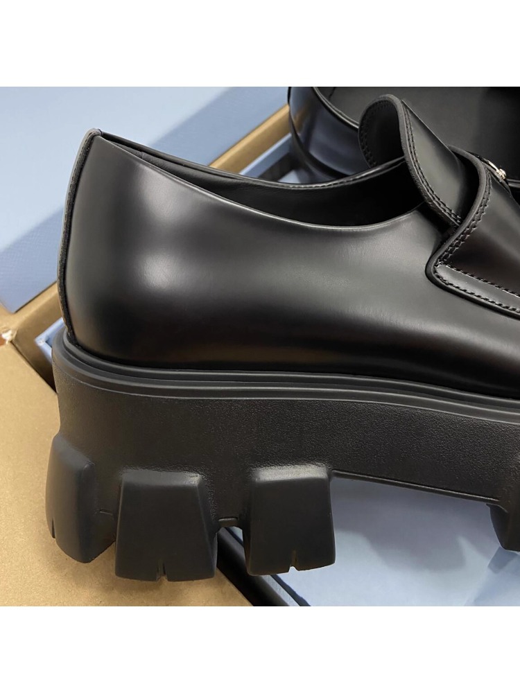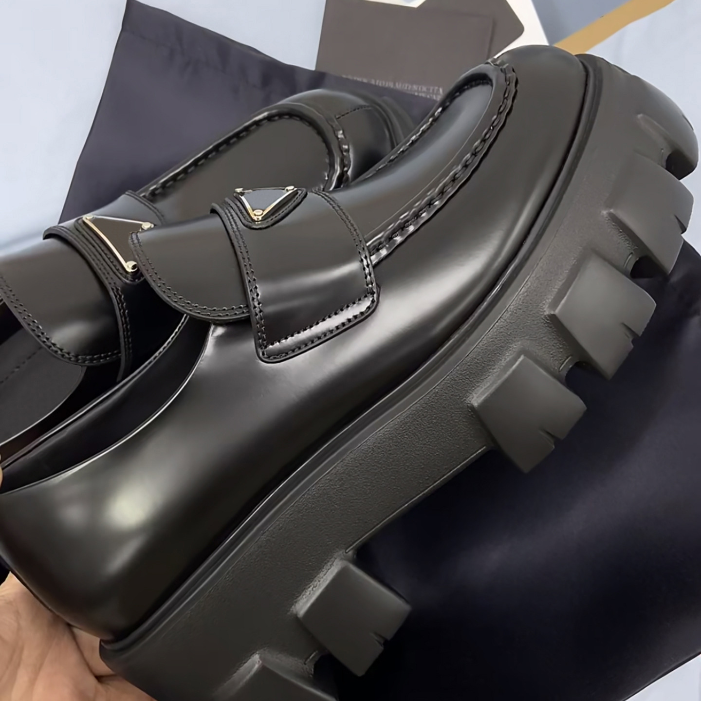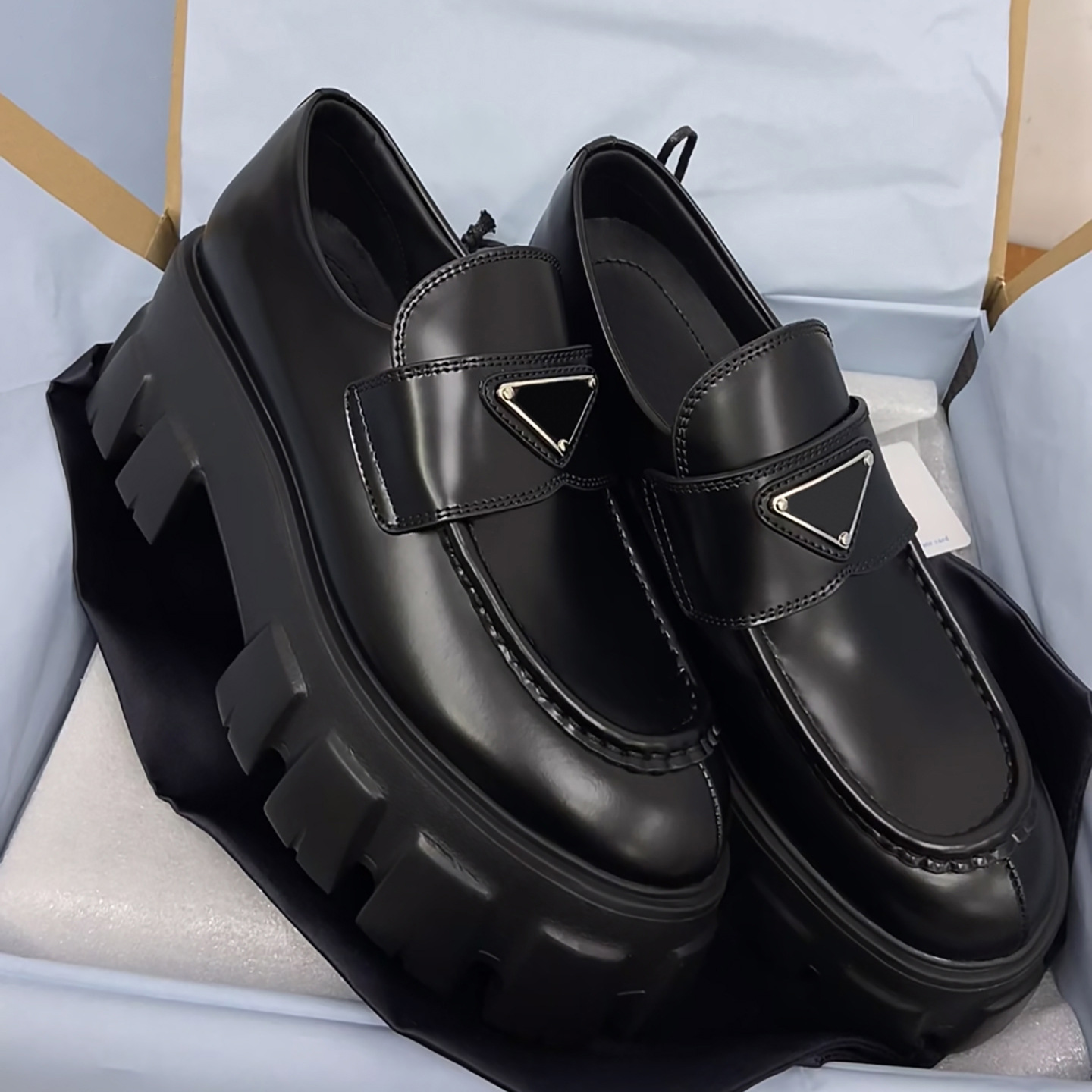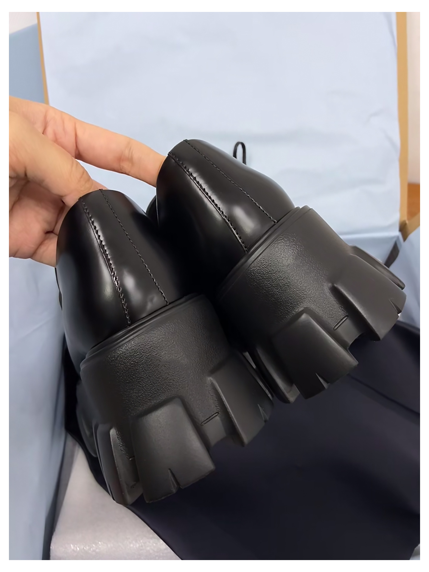Толстосолёные лоферы 2025 нового стиля из натуральной кожи с круглым носком и треугольным логотипом, толстосолёные платформенные туфли для женщин, малые кожаные туфли на одной ноге