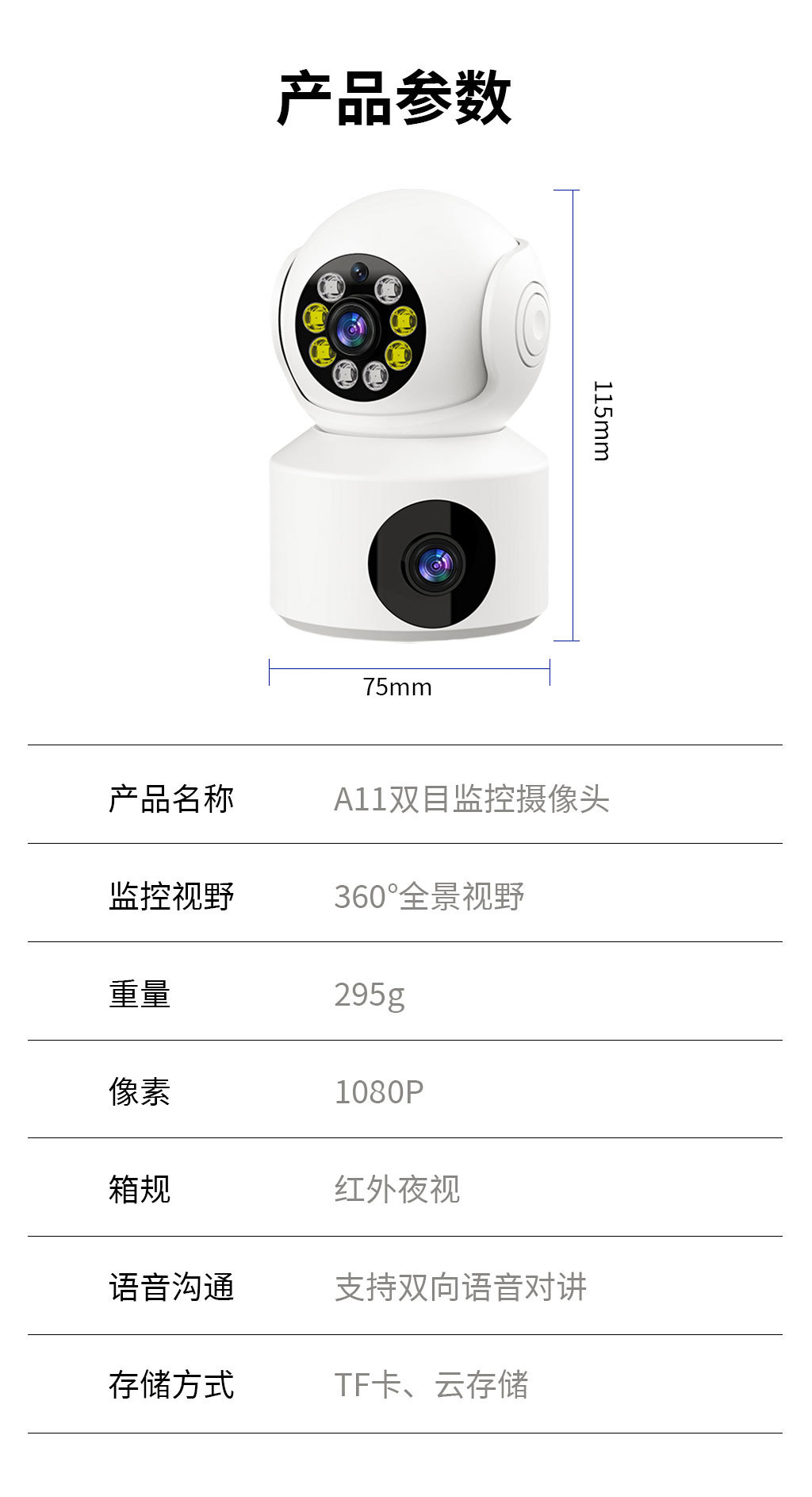 Внешнеэкономическая A11 бинокулярная камера с 360-градусным вращением, безопасность дома, беспроводное Wi-Fi, ночное видение, полноцветная камера мониторинга