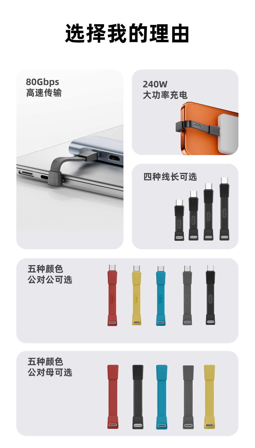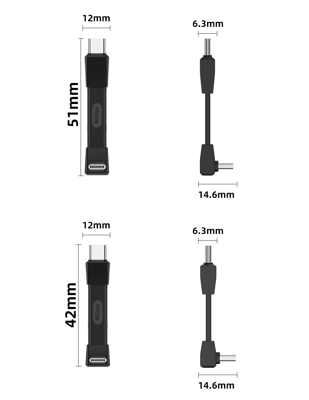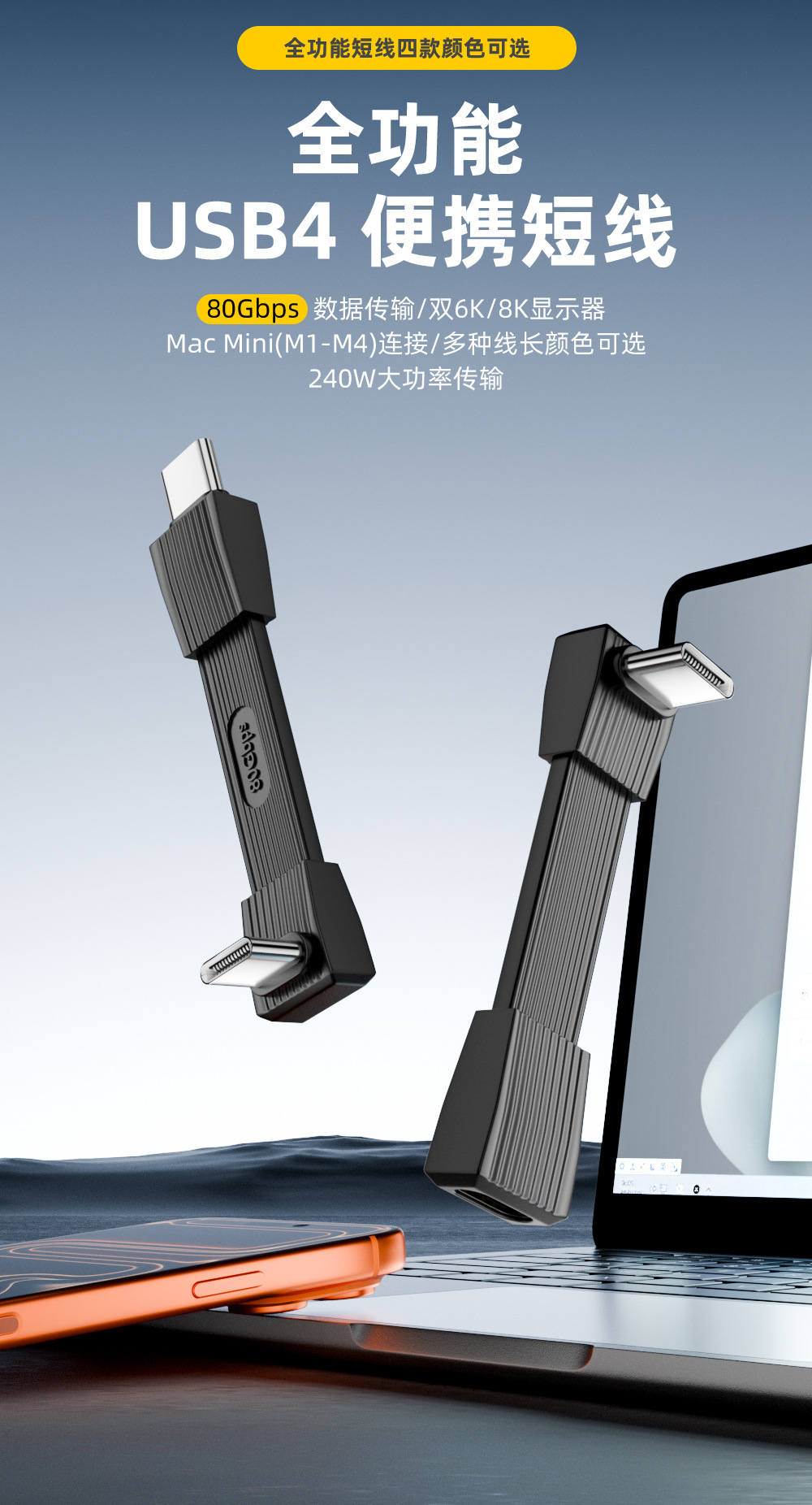 240W Кабель для мобильного жесткого диска с двойной головкой Type-C, поддерживает Thunderbolt 5, стерео, короткий кабель для подключения к заднему экрану