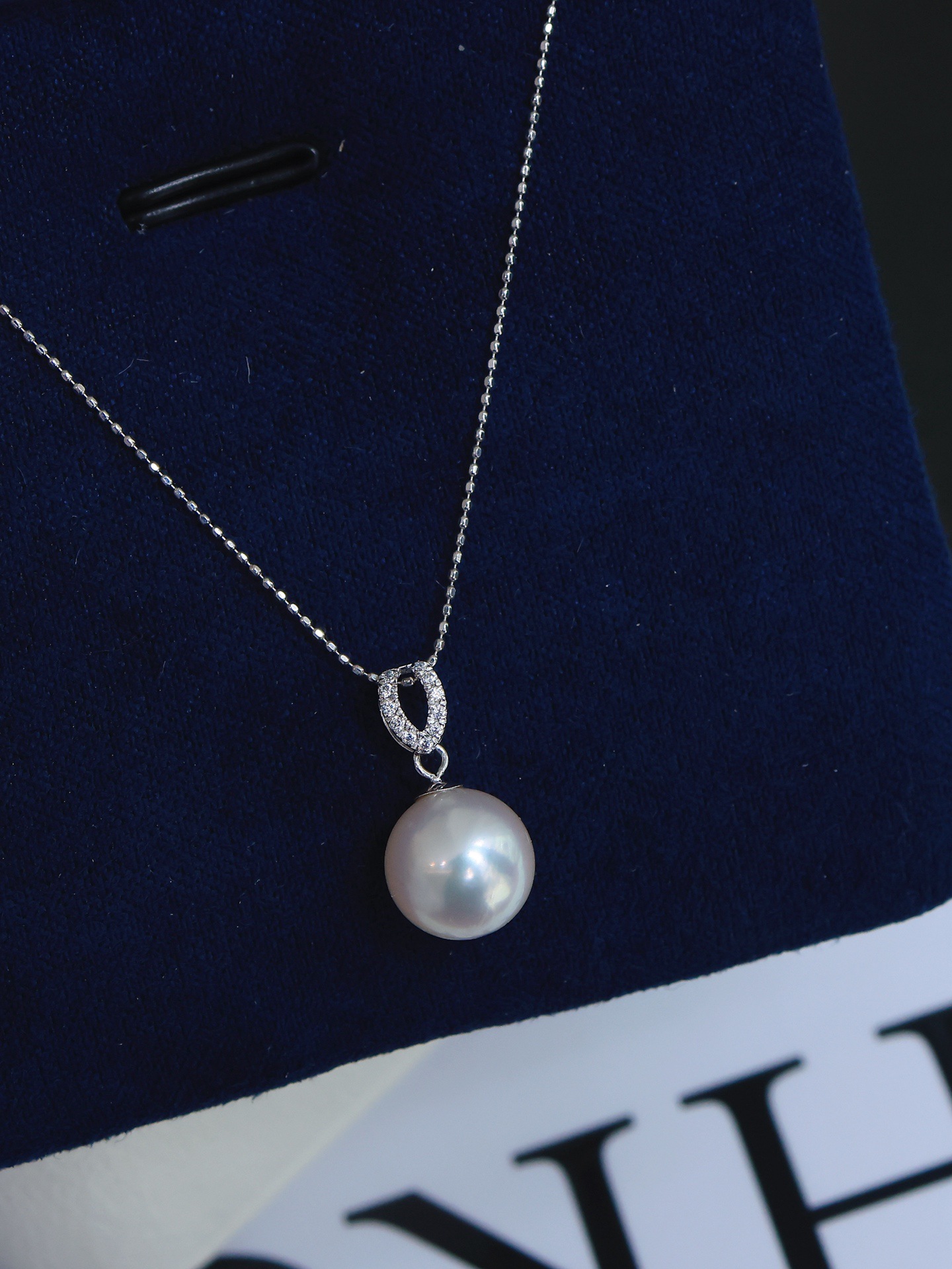 Аксессуары из платины Pt900 Маленький изысканный кулон с жемчугом, циркон в качестве вставки, бусины 8-9мм, без цепочки с бусинами