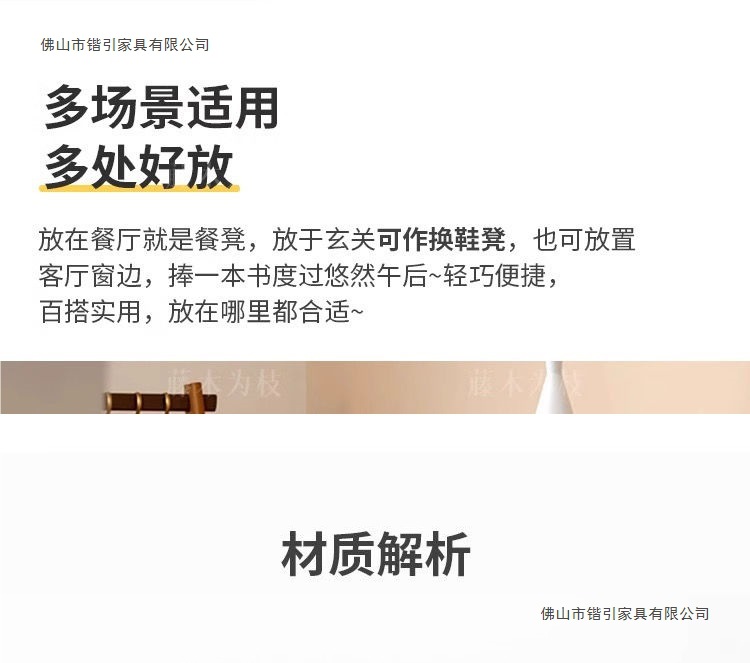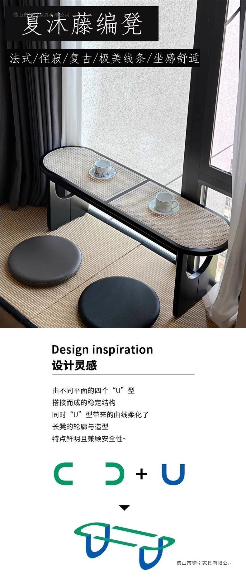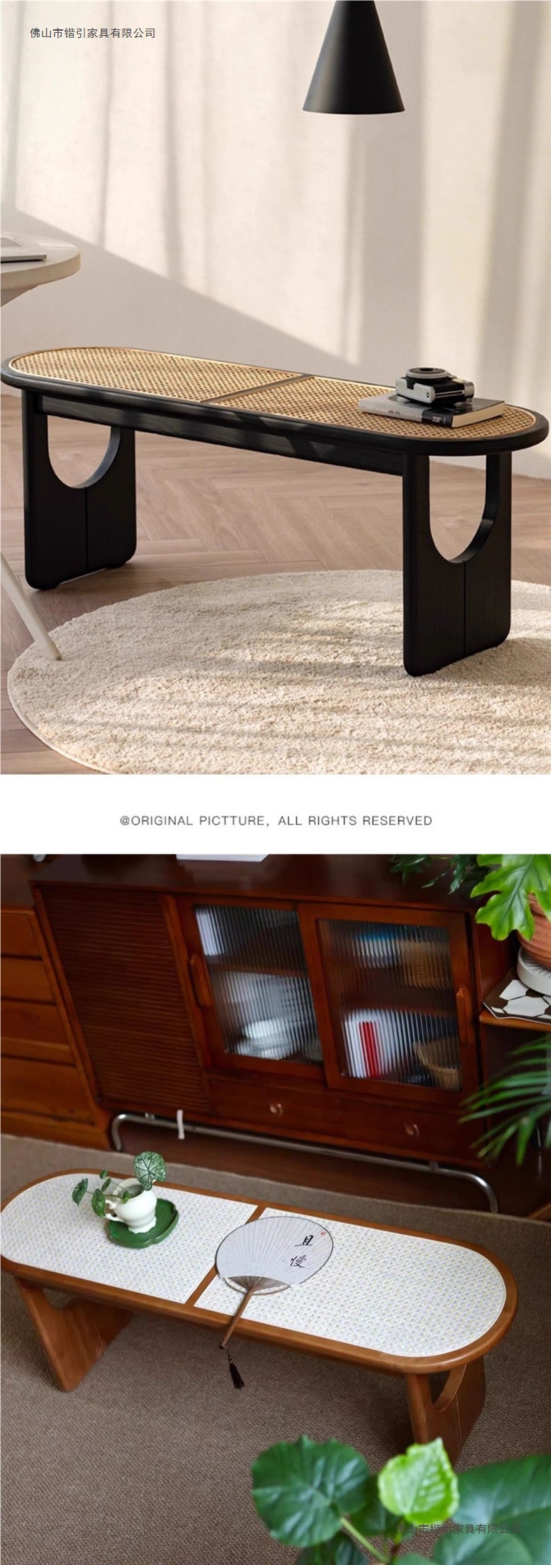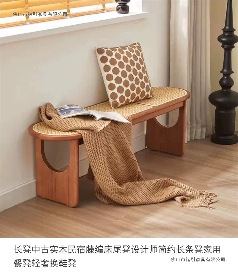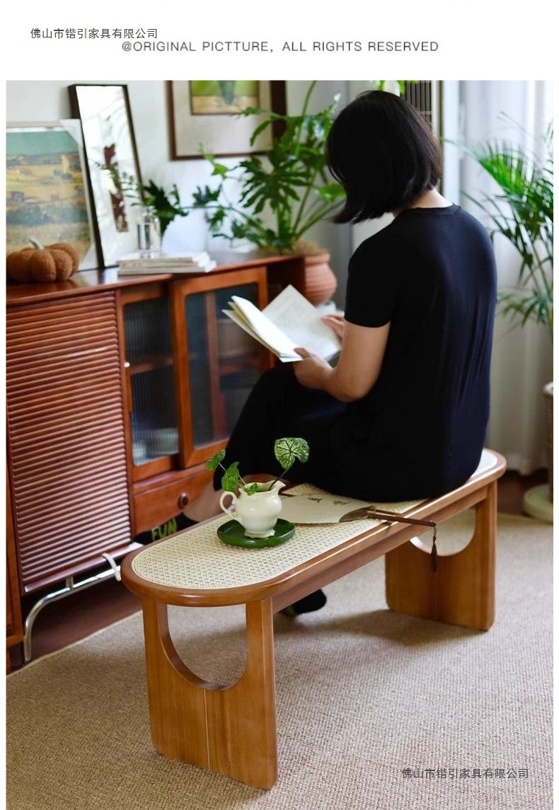 Минималистская длинная скамья для домашнего обеда, роскошный ротанговый пуф, скамья у кровати, скамья для смены обуви из массива дерева, винтажная