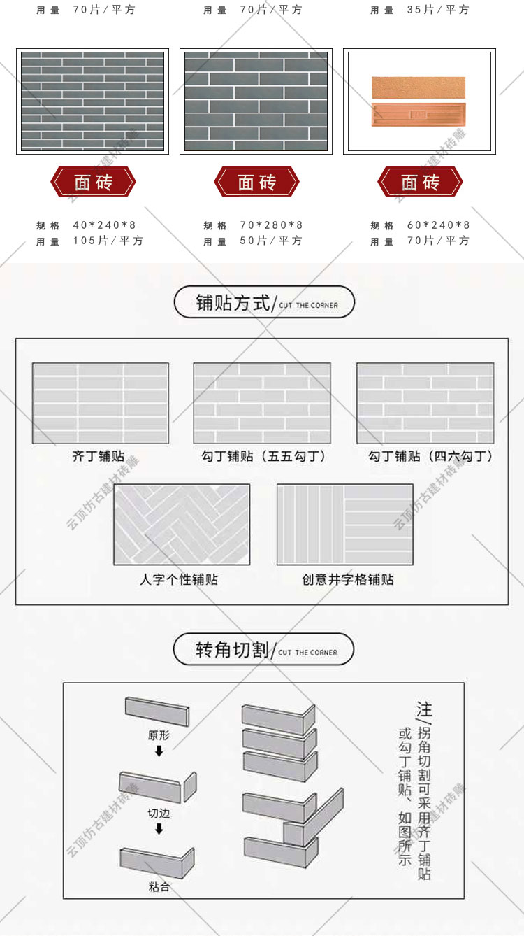 Фасадные плитки в китайском стиле, культурные плитки, маленькие зеленые плитки, полосатые плитки, серые антикварные плитки, патчи, наружные плитки полного тела