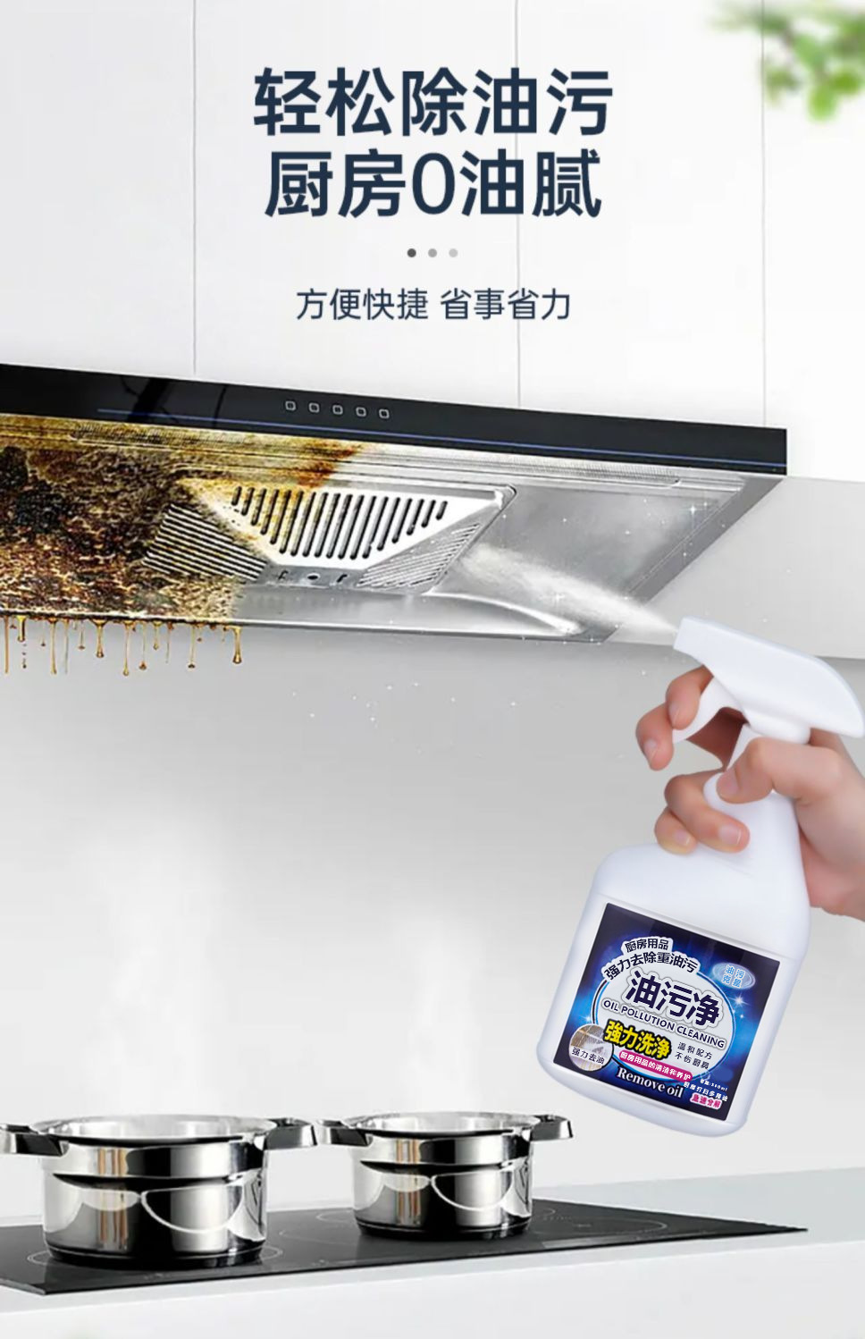 Удалитель масляных пятен, очиститель вытяжек, обезжириватель, очиститель для тяжелых масляных пятен на кухне