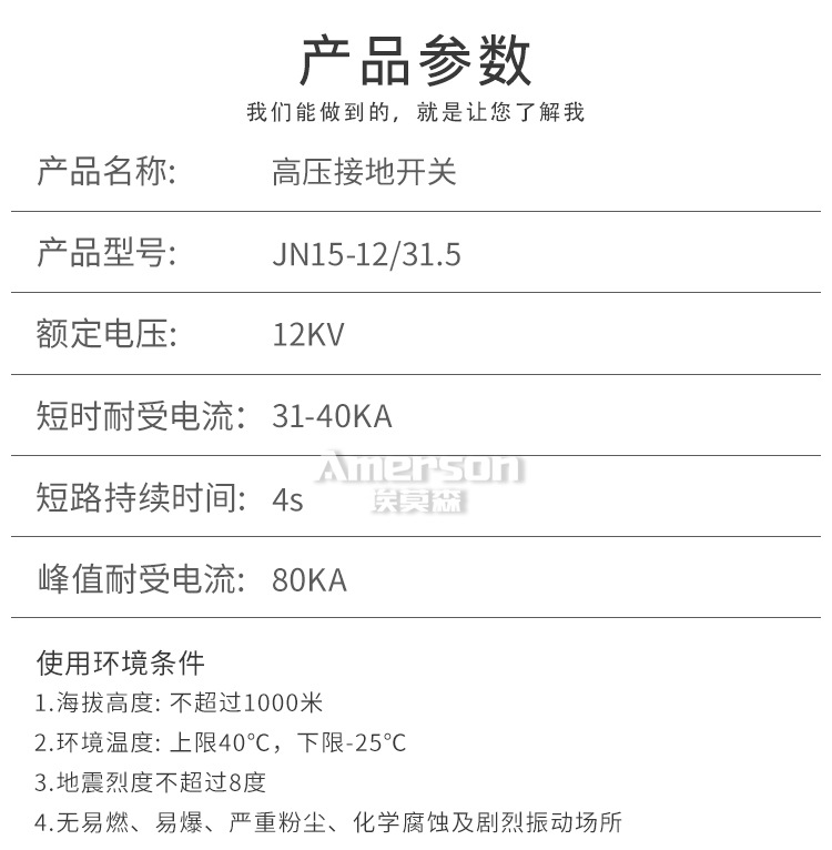 Emerson Jn15-12/31.5 внутренний шкаф кольцевой сети высоковольтный переключатель заземления 10кВ высоковольтный заземляющий нож 210мм