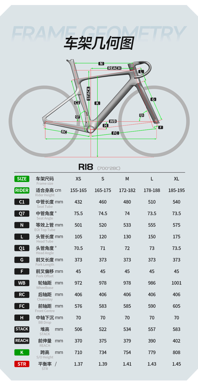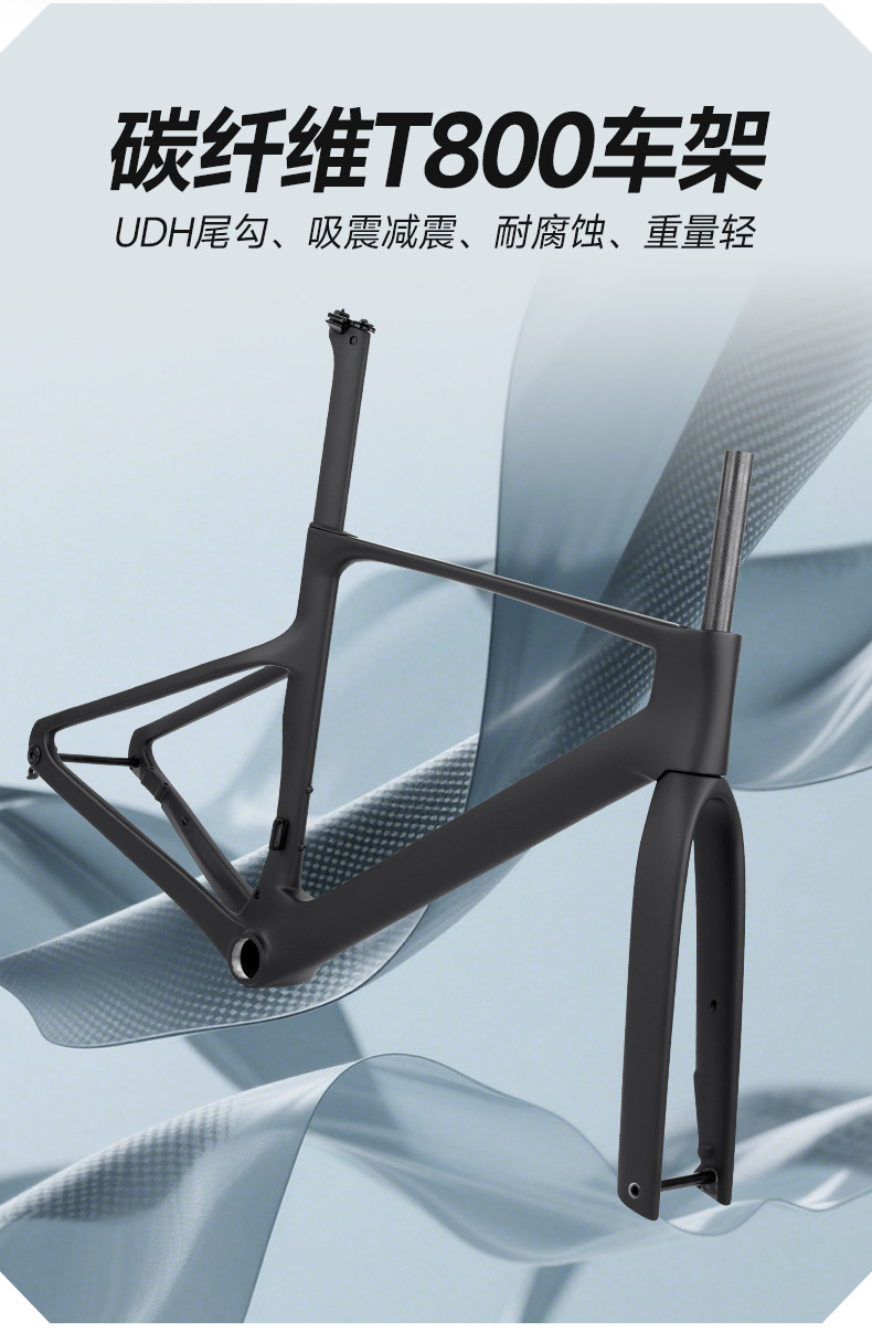 【车架】:R18(碟刹桶轴12*142) 高模量碳纤维T800&T1000/破风竞速/内走线/UDH