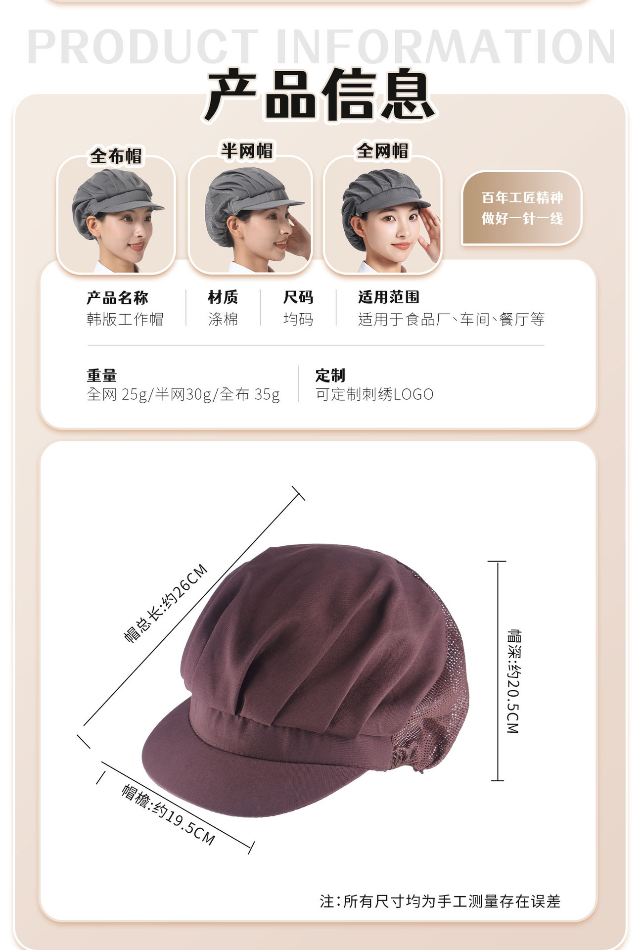 Кепка для фабрики и мастерской, поварская шляпа для кухни, гигиеническая шляпа для официантов, против потеря волос для мужчин и женщин