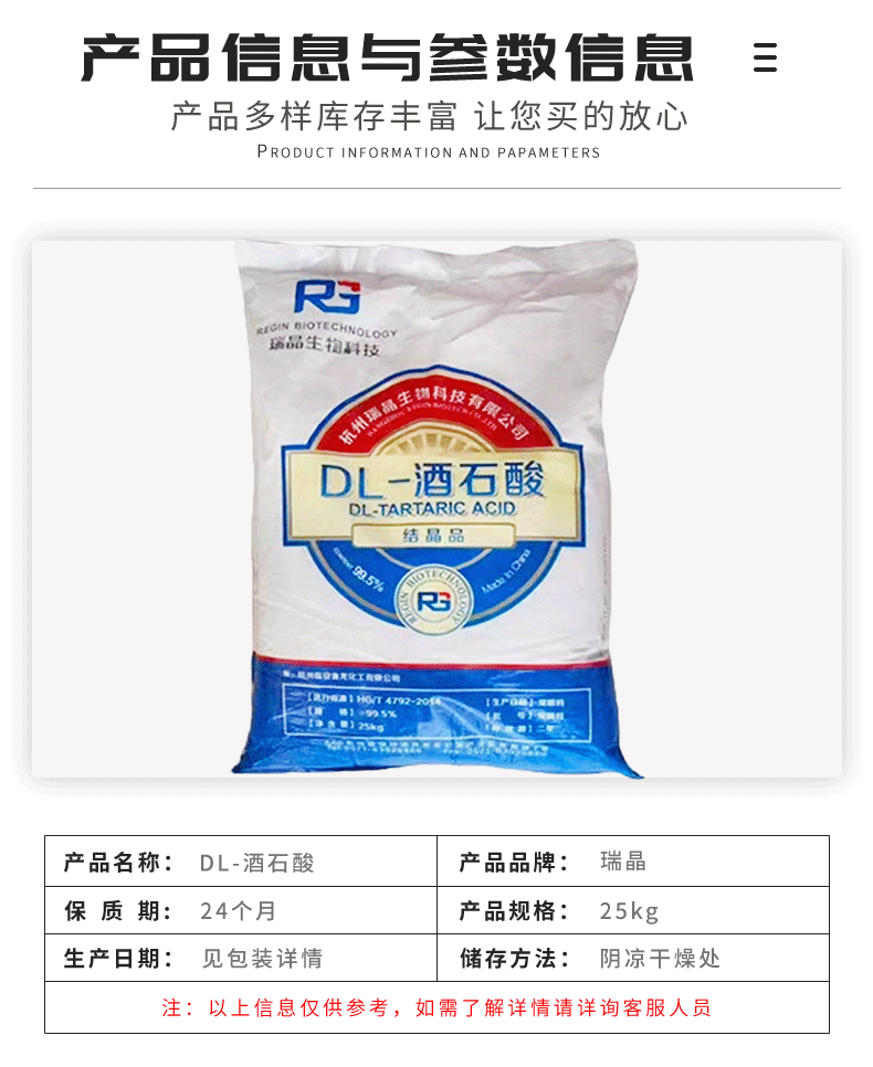 Регулятор кислотности, антиоксидант, содержание 99%, Dl-винная кислота Hangzhou Ruijing