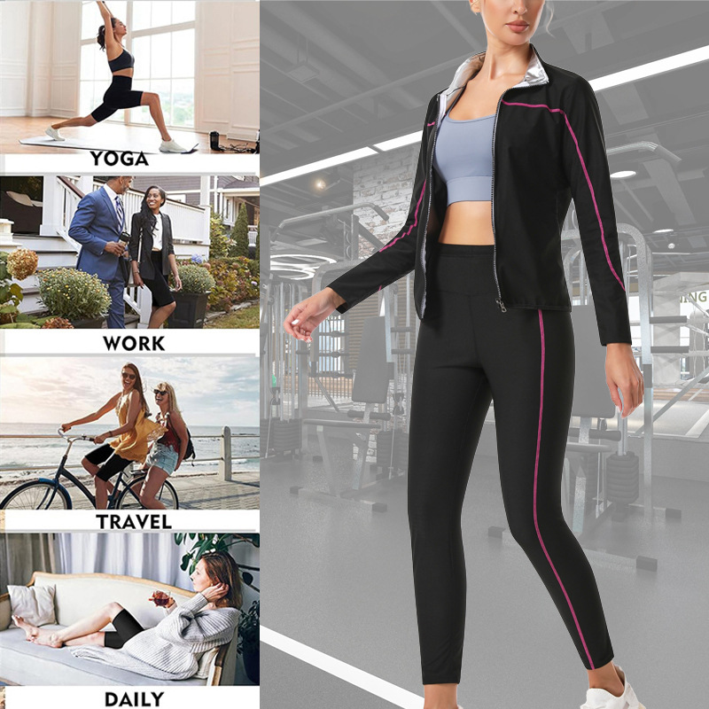 Спортивный костюм с высоким поясом, контроль живота, йога, с замком, длинный воротник
