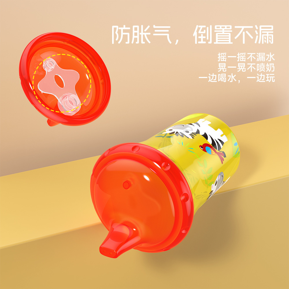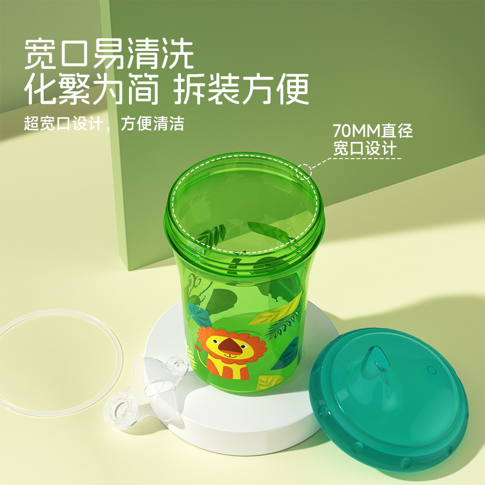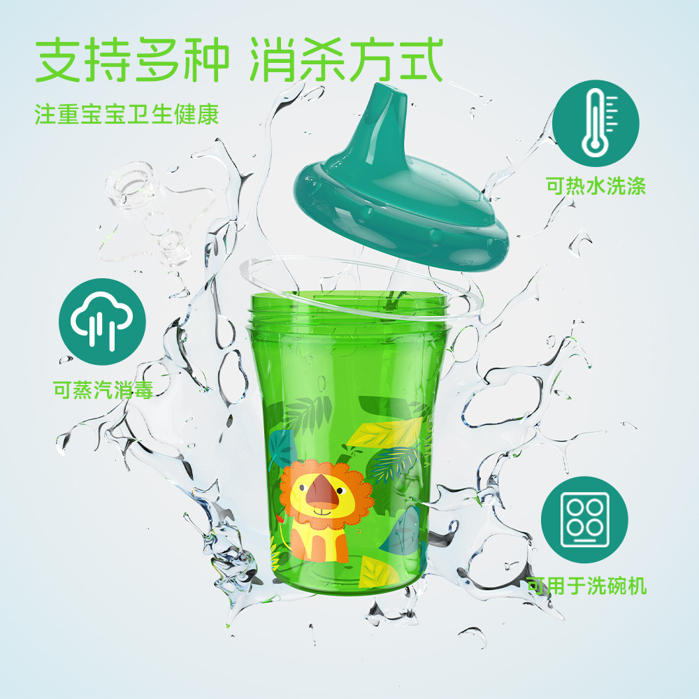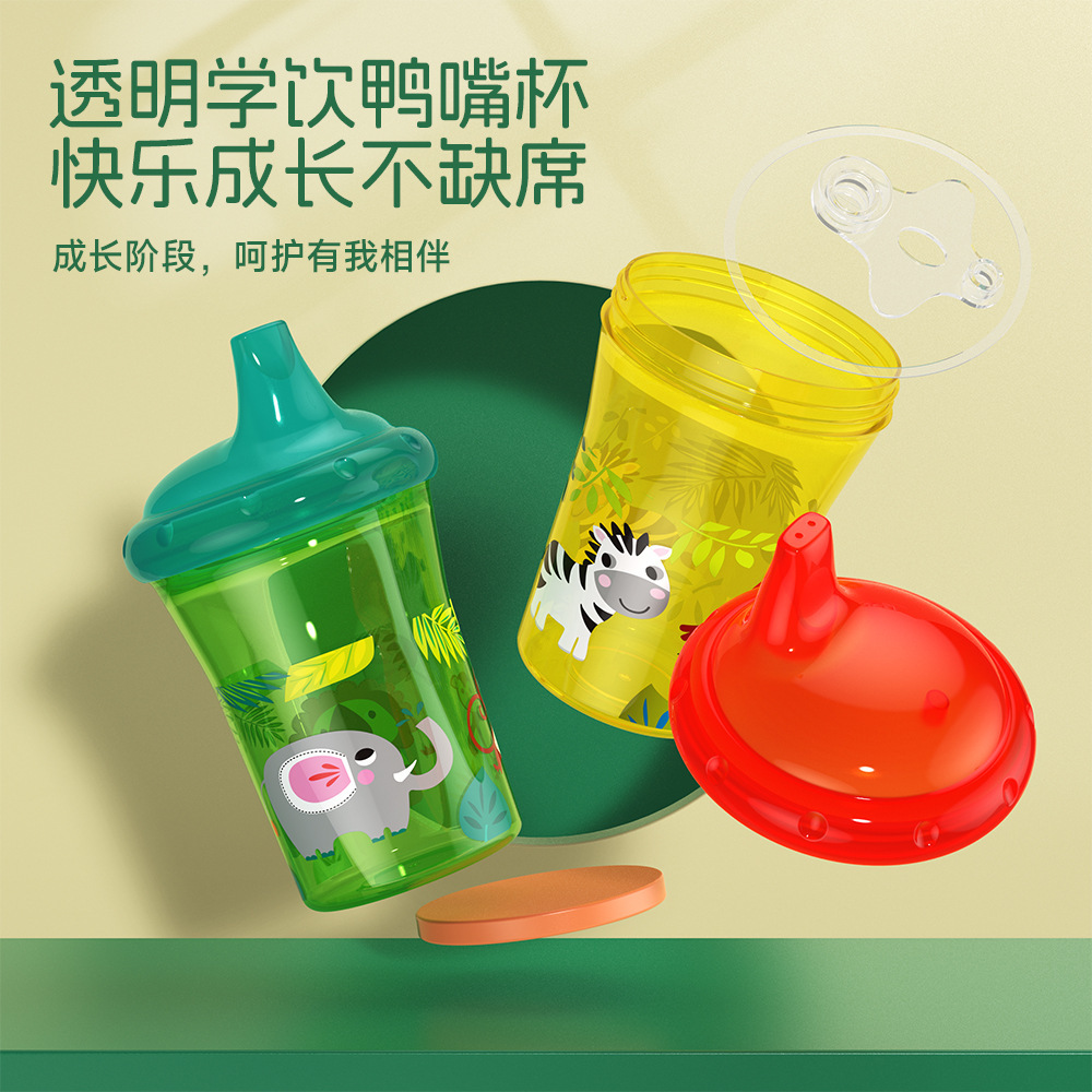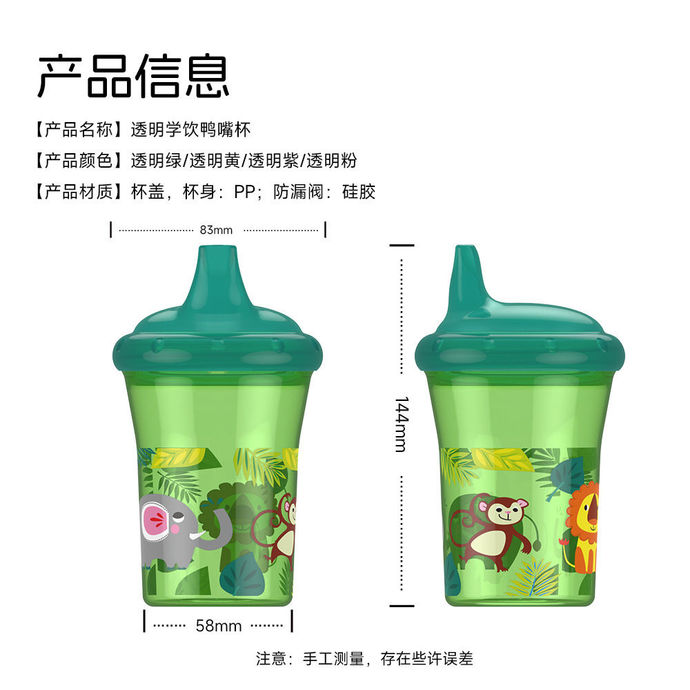 Оптовая прямая чашка 260 мл с четырехцветным принтом животных для обучения детей питью, детская чашка с клювом, импортная детская чашка