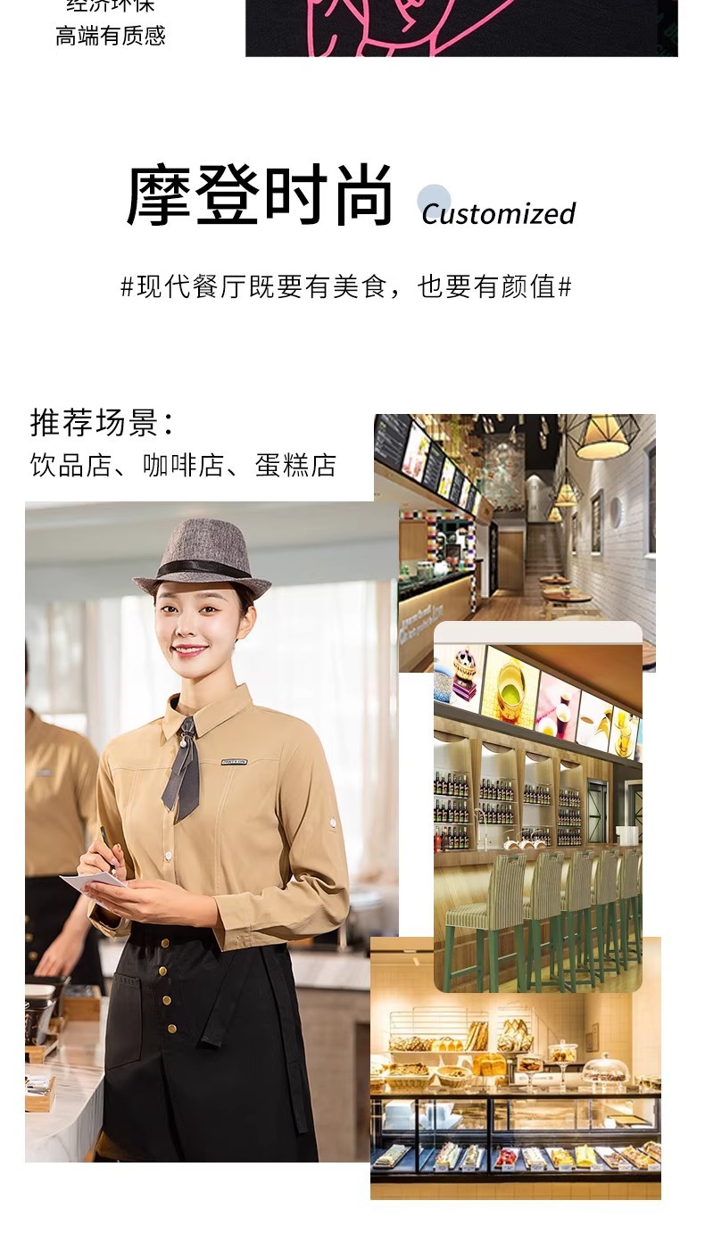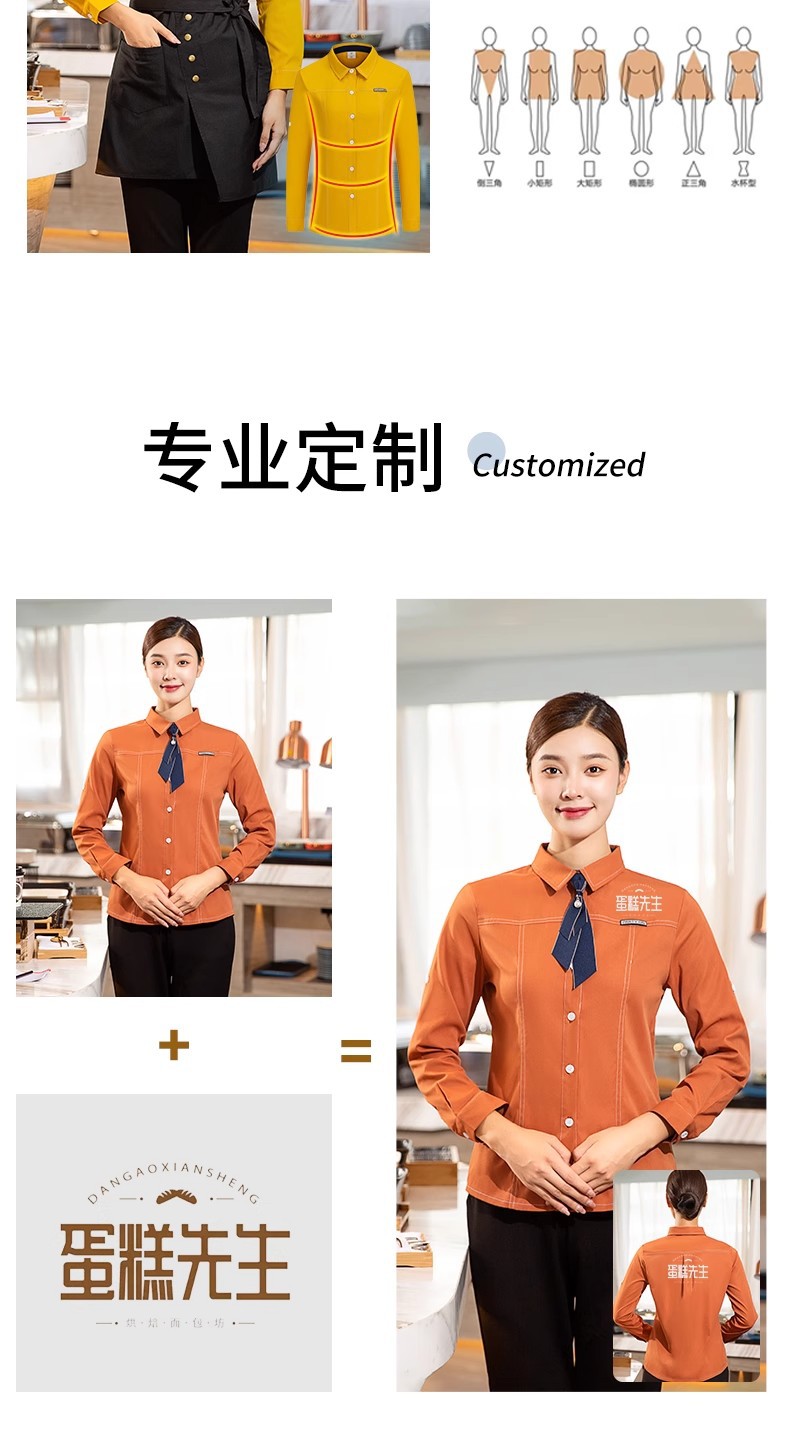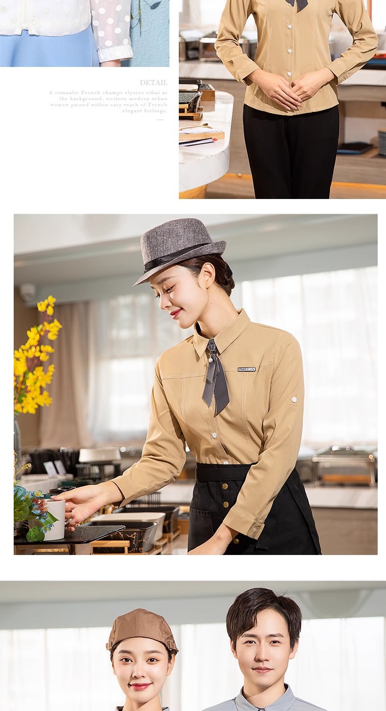 Одежда для работы высокого класса, рубашка с длинным рукавом для ресторанов, китайского общественного питания и западной кухни, униформа для официанток