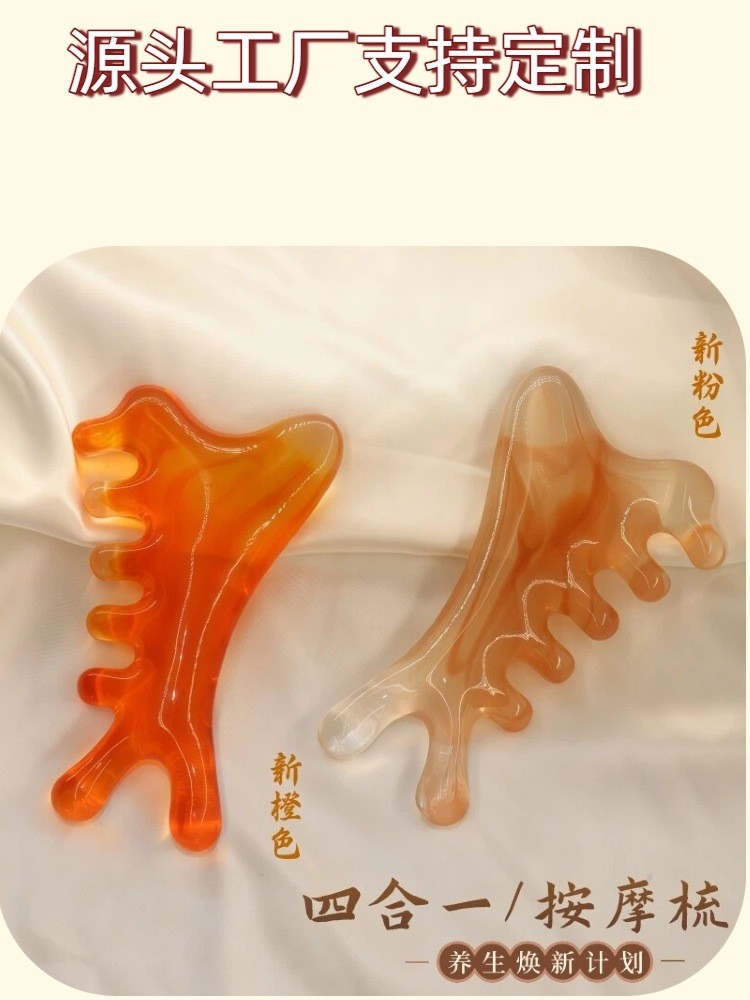 Популярный четырехвместный массажный гребень из смолы, многофункциональный специальный гребень для лица, скребок для красоты, меридианный щеточка