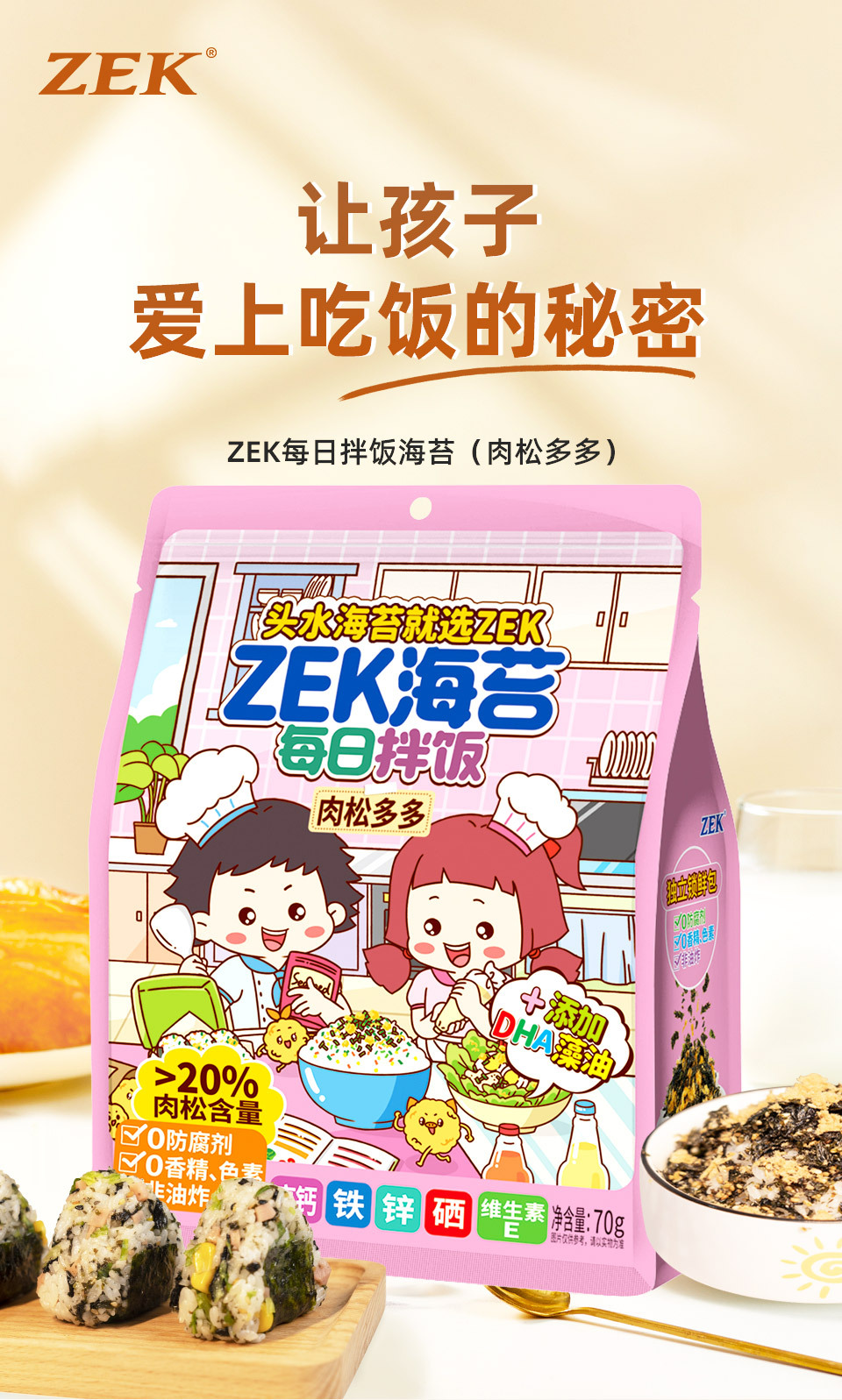 Морские водоросли Zek Daily Bibimbap 70г/пакет оригинальный свиной волокно овощной вкус нарезанные морские водоросли рисовые шарики суши готовые к употреблению