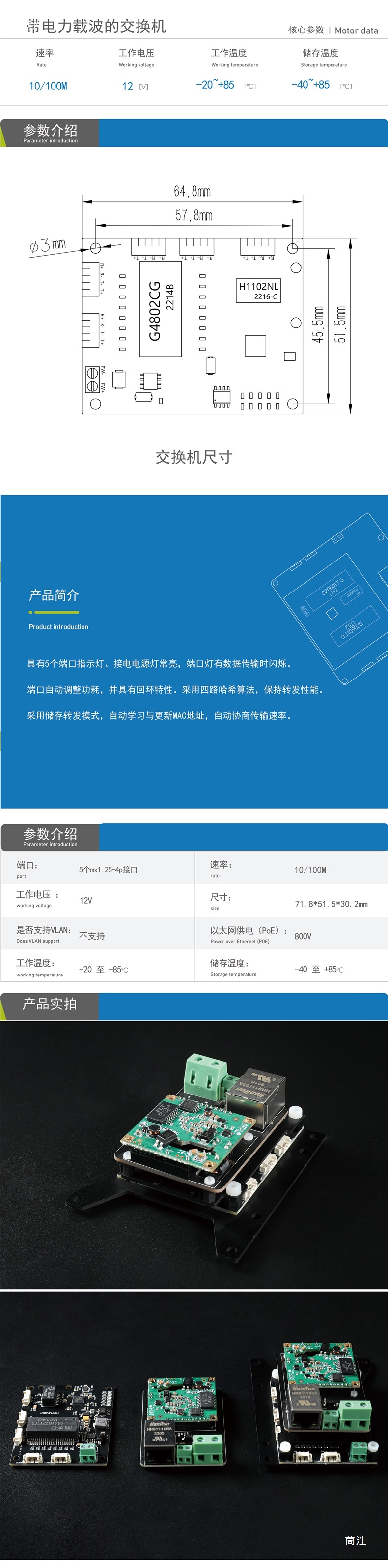 Мини-выключатель Rov5-Way низкопотребляющий, 100 м Ethernet, 300 м модуль связи, блок питания