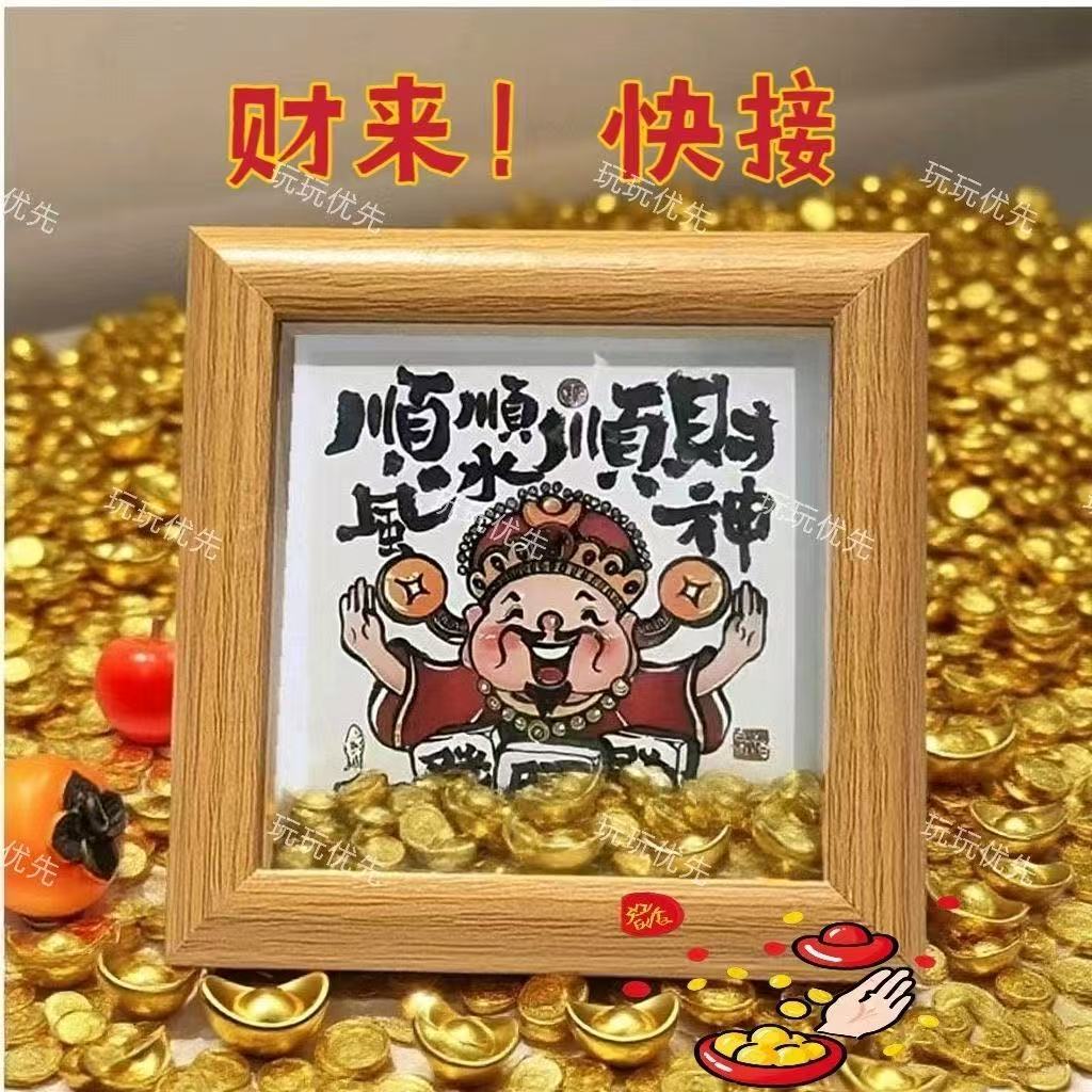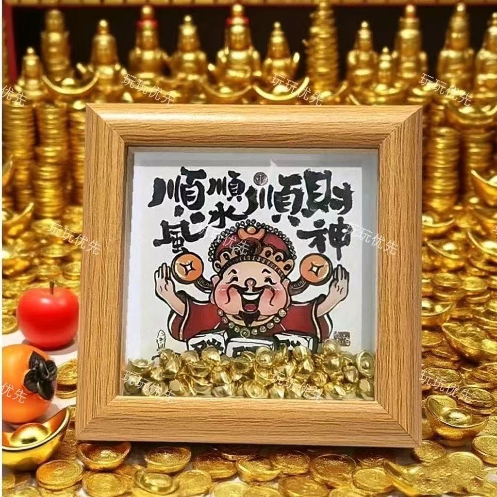 Каллиграфия и живопись маленькие украшения, декоративные картины интернет-знаменитостей, рамки для фотографий с богом богатства, рамки для фотографий на стол, привлекающие богатство, китайский стиль, новый китайский стиль