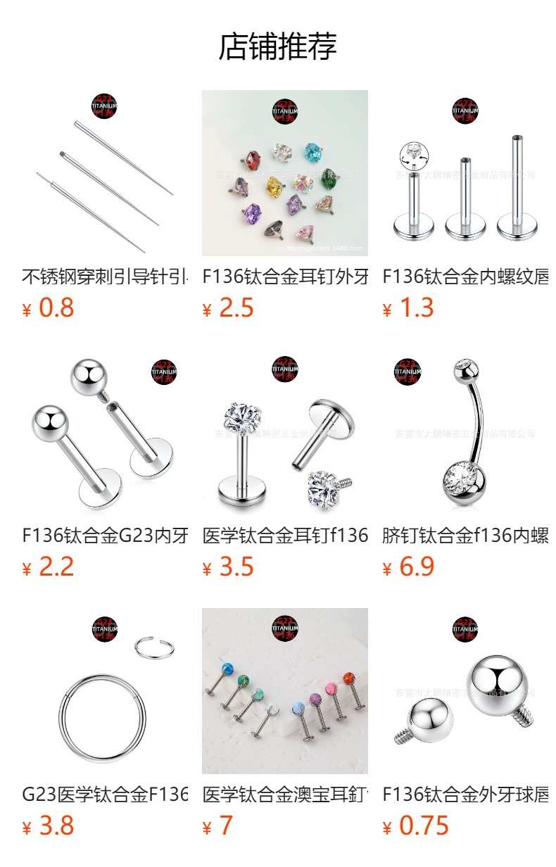![]() | The internal thread model is m1.6-2.0 thick, suitable for 1.6mm (14g) external thread jewelry | ¥0.8 / ≈ 9 ₽ | 9999999 | 6130228251258 | |