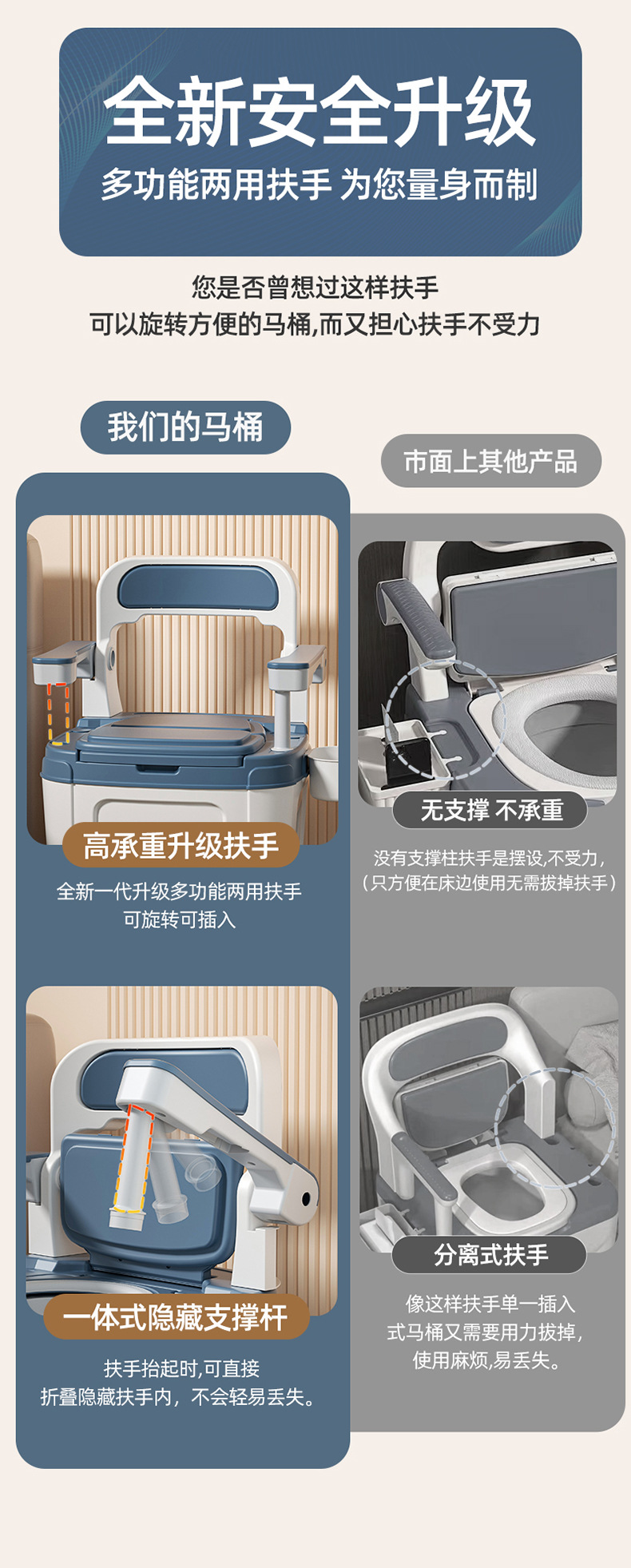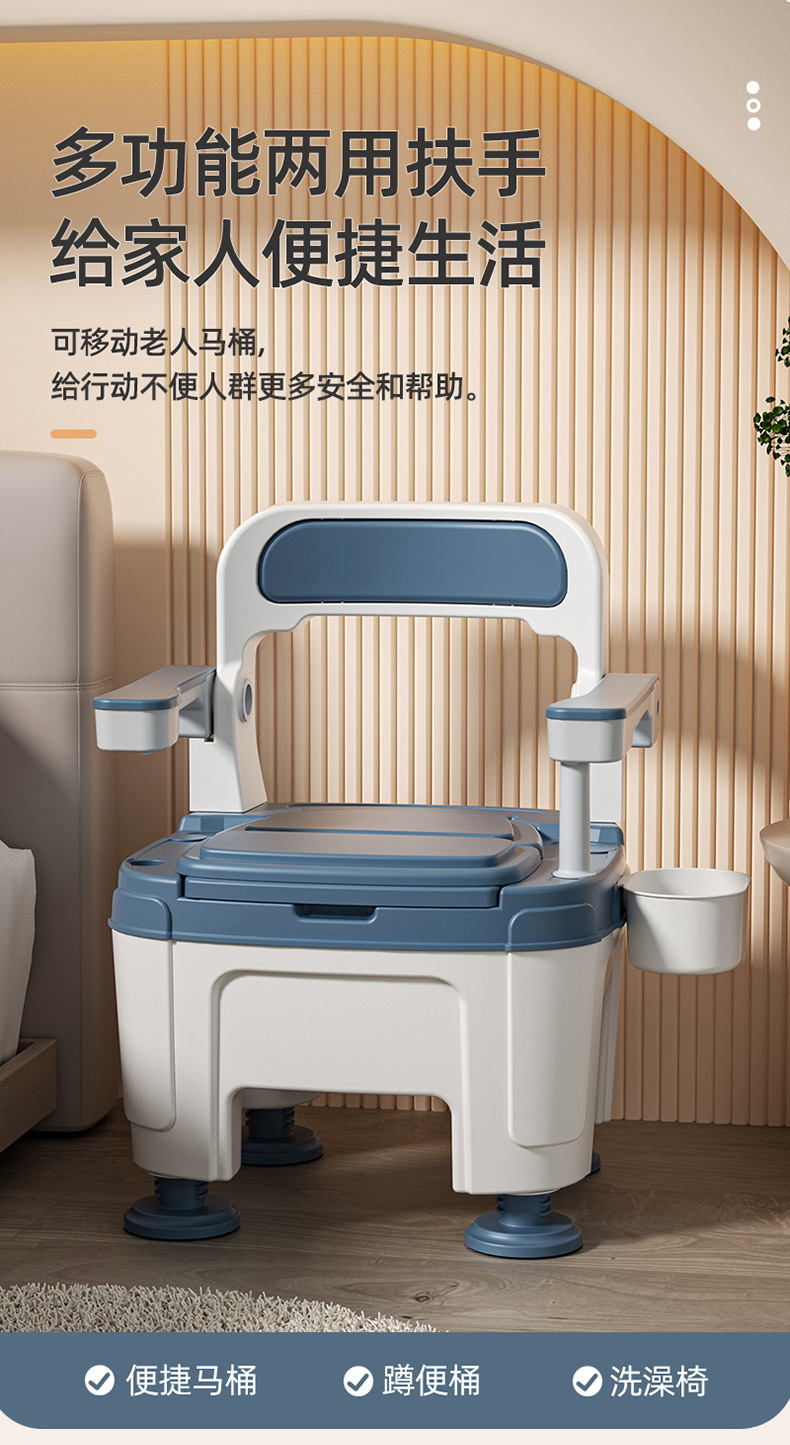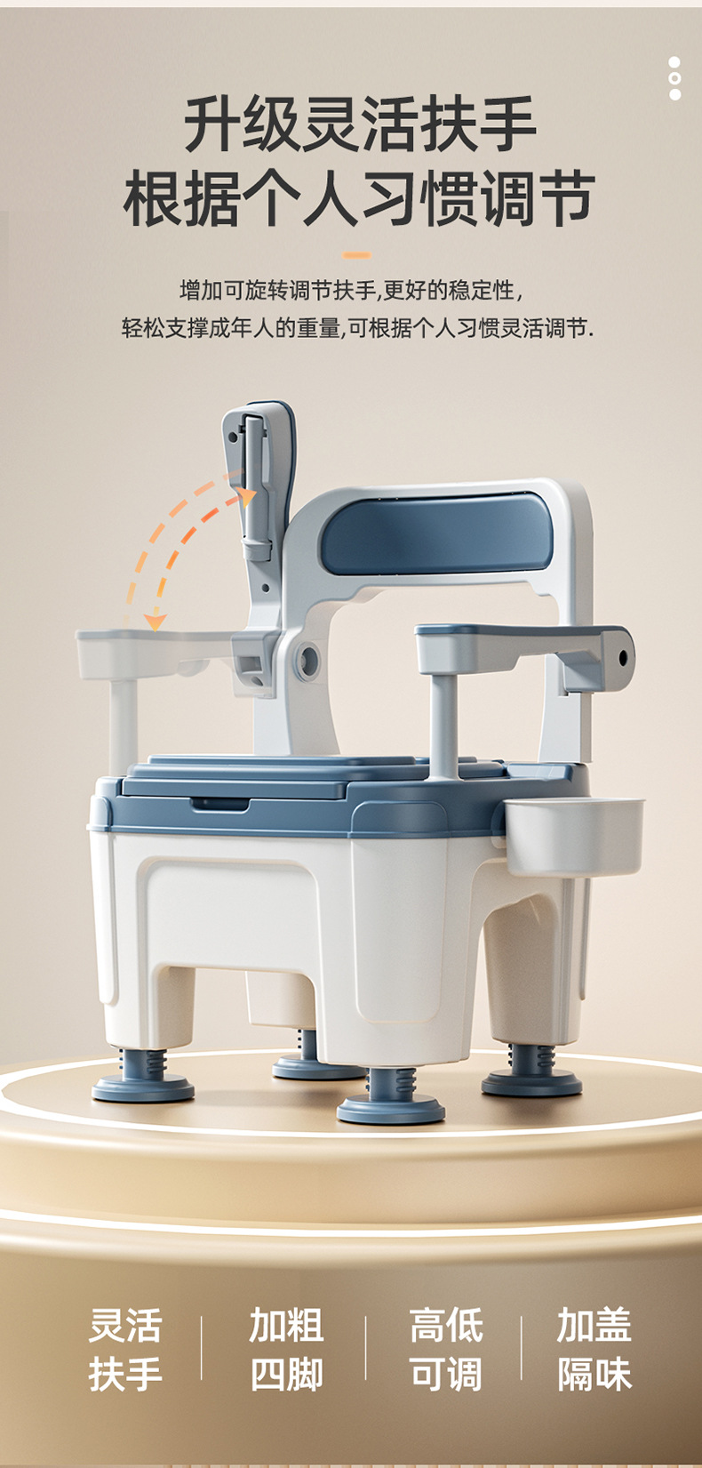 Большой портативный съемный туалетный стул для пожилых людей и беременных, домашний, дезодорирующий, штабелируемый, с поворотными подлокотниками