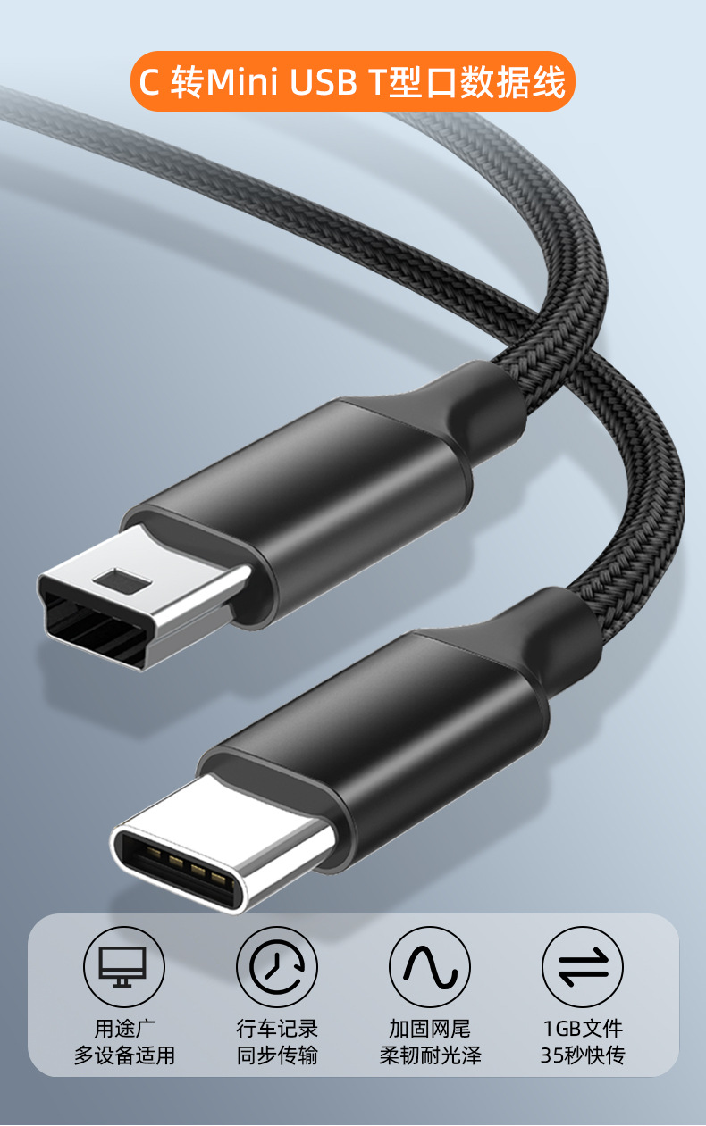Кабель передачи данных Type-C на Miniusb T-Port для подключения ноутбука к камере или жесткому диску