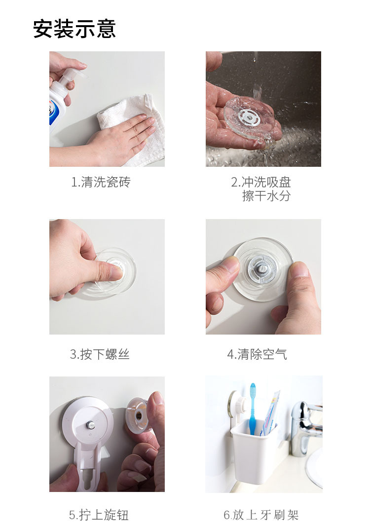 产品安装固定在墙上24小时后再使用(此举可使吸盘更牢固)