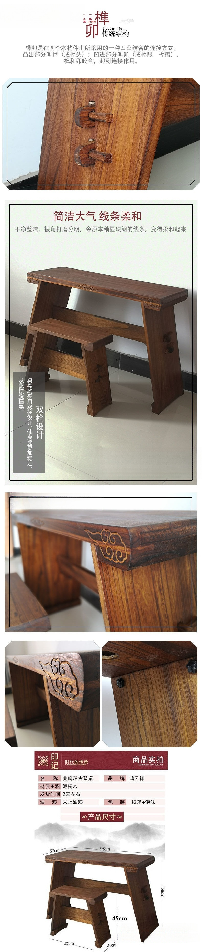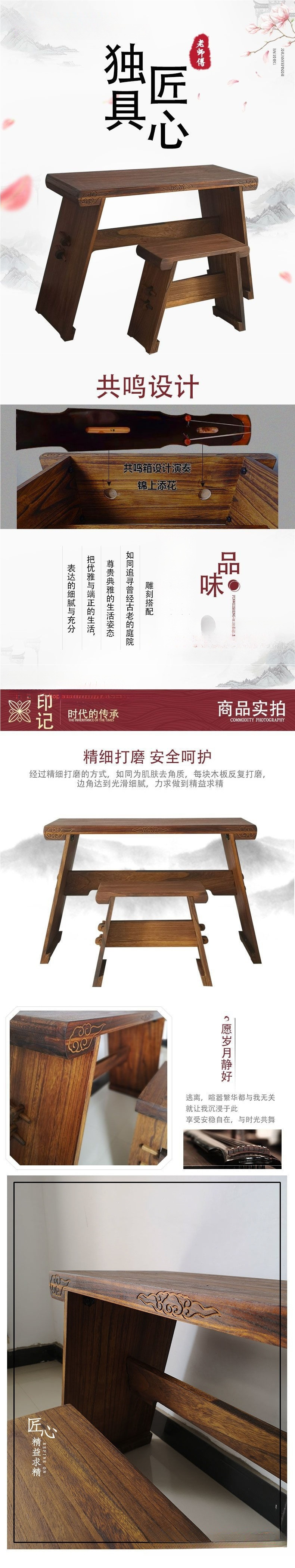 Современный новый китайский стиль, ретро набор стол и табурет для гуциня, массивное дерево, портативный стол для гуциня, китайский табурет, простой набор столов