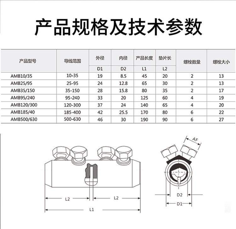 Сплайсинг трубки типа Amb, алюминиевый механический терминал, гайка крутящего момента, соединитель терминала 2-4-6