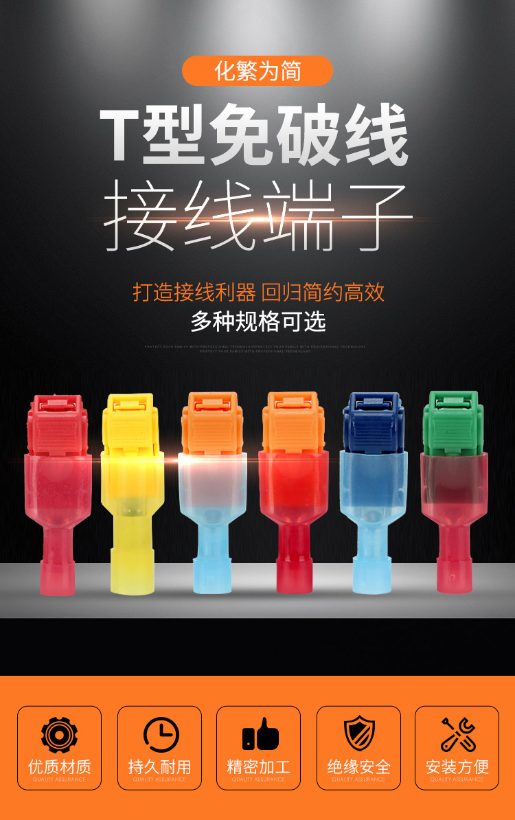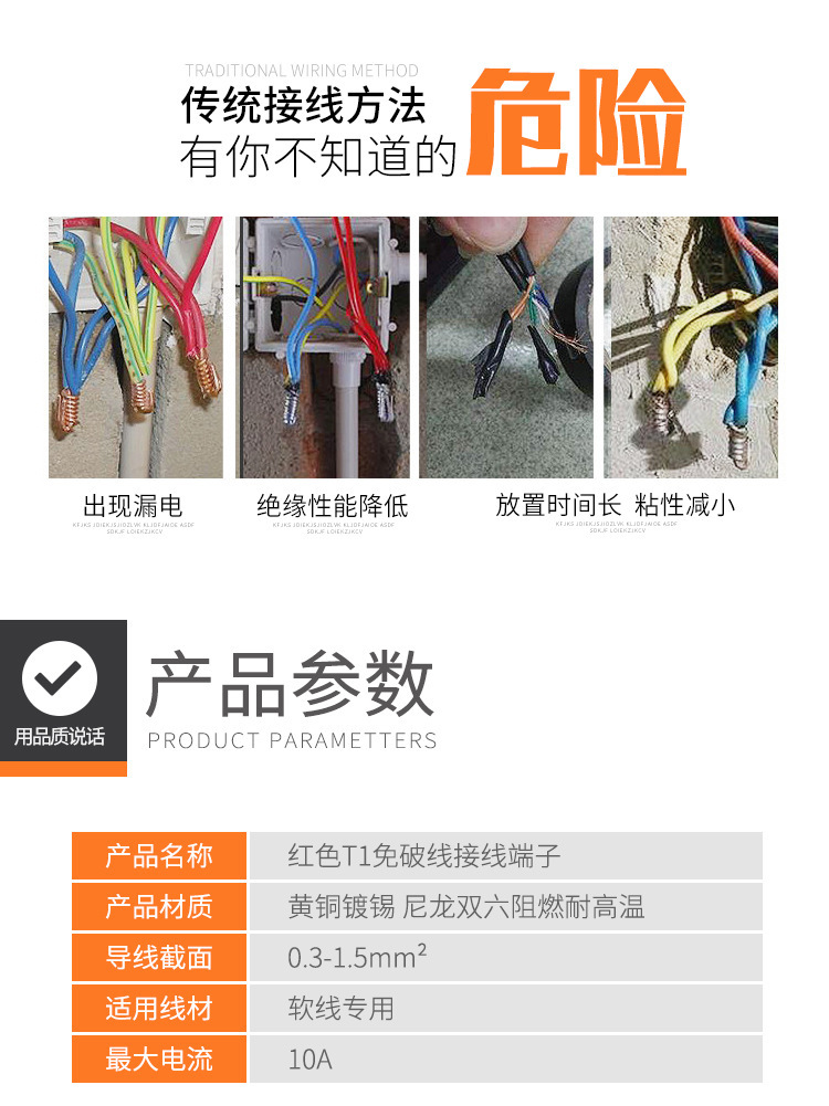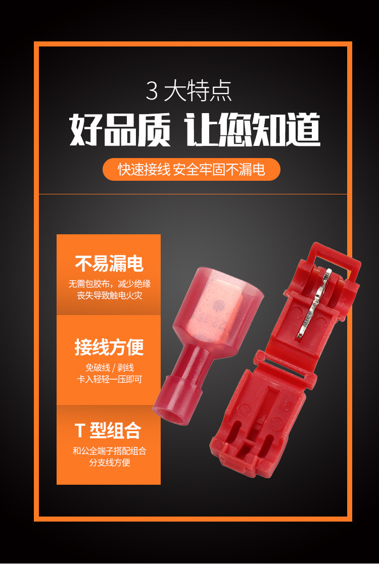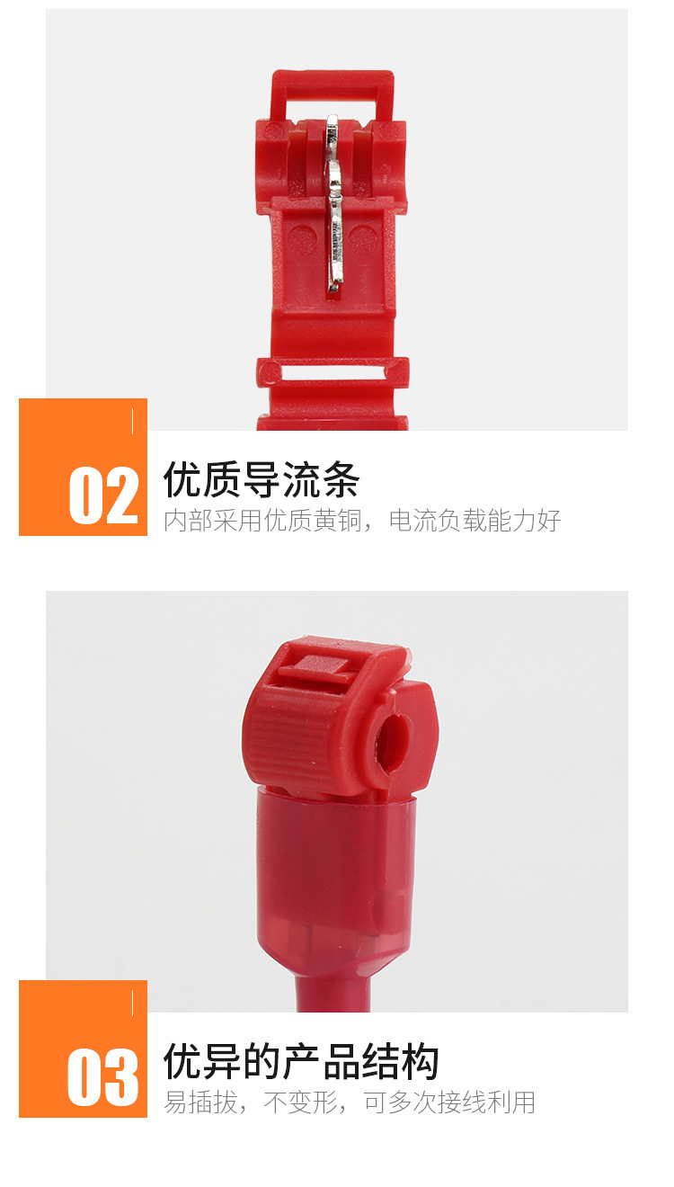 T-образный зажим для жесткого провода, разъем без обрезки, соединитель без снятия изоляции, оранжевый, огнестойкий, неразрушающий разветвитель