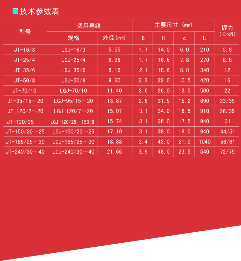 Зажим национального стандарта, трубка для соединения Jt, зажим для алюминиевого многожильного провода, трубка для соединения проводника