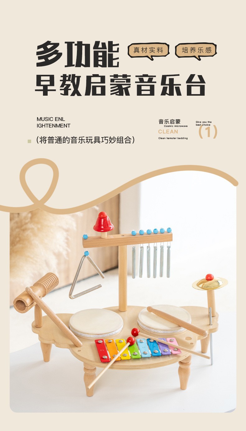 Индивидуальная обработка изображений и образцов, OEM печать логотипов, деревянная многофункциональная музыкальная подставка, набор барабанов, фабрика игрушек для детей