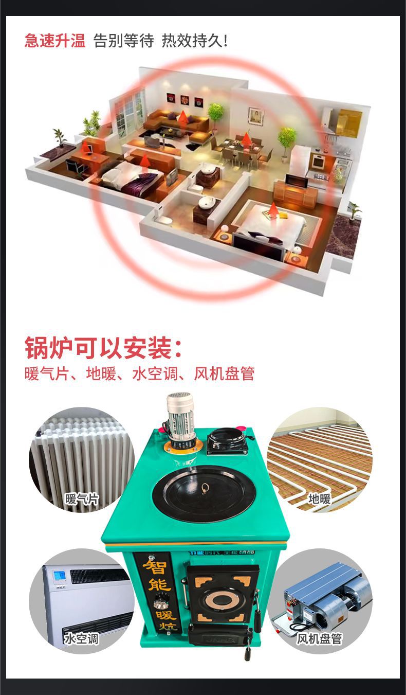 Новая модель печи для домашнего использования, подходит для угля, электричества и дров, с теплым полом, отоплением скота и водяным отоплением, многофункциональная