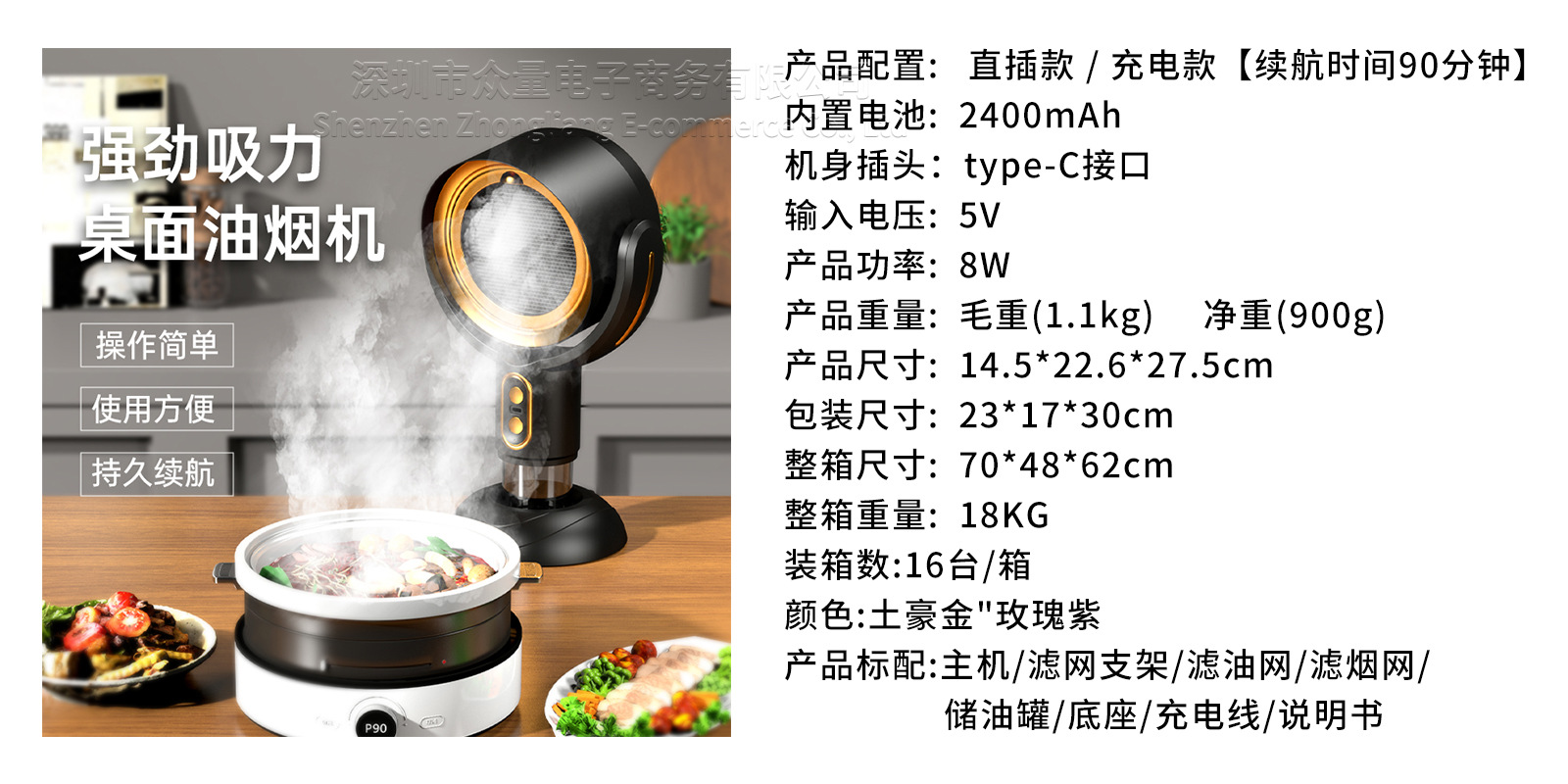 Кросс-бордерная настольная вытяжка, мини-портативная для барбекю и горячего горшка