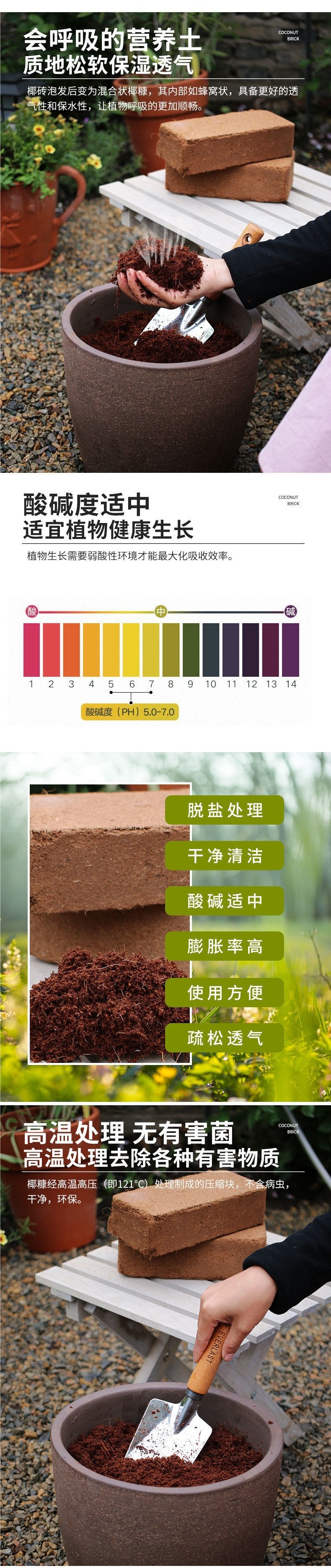 Кокосовый кирпич питательной почвы для выращивания овощей, общая десалинизация кокосовой отрубей большой кирпичной почвы, почва для зимовки цветов черепах