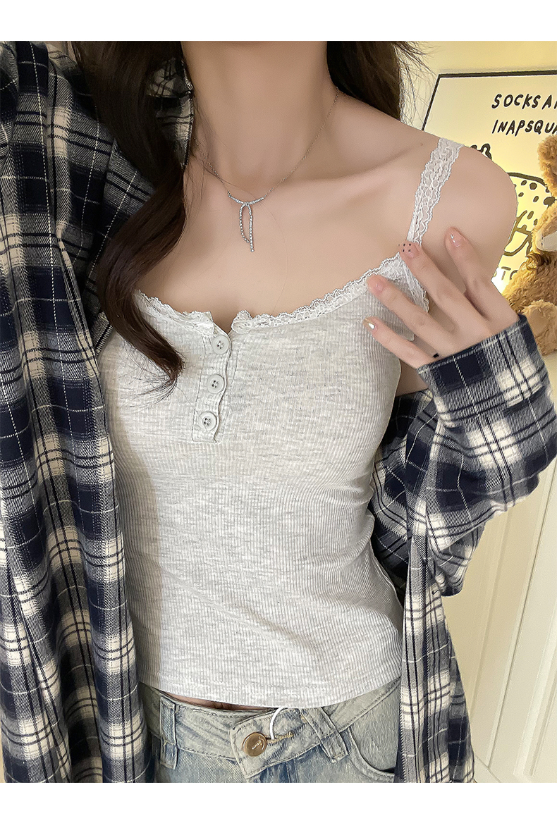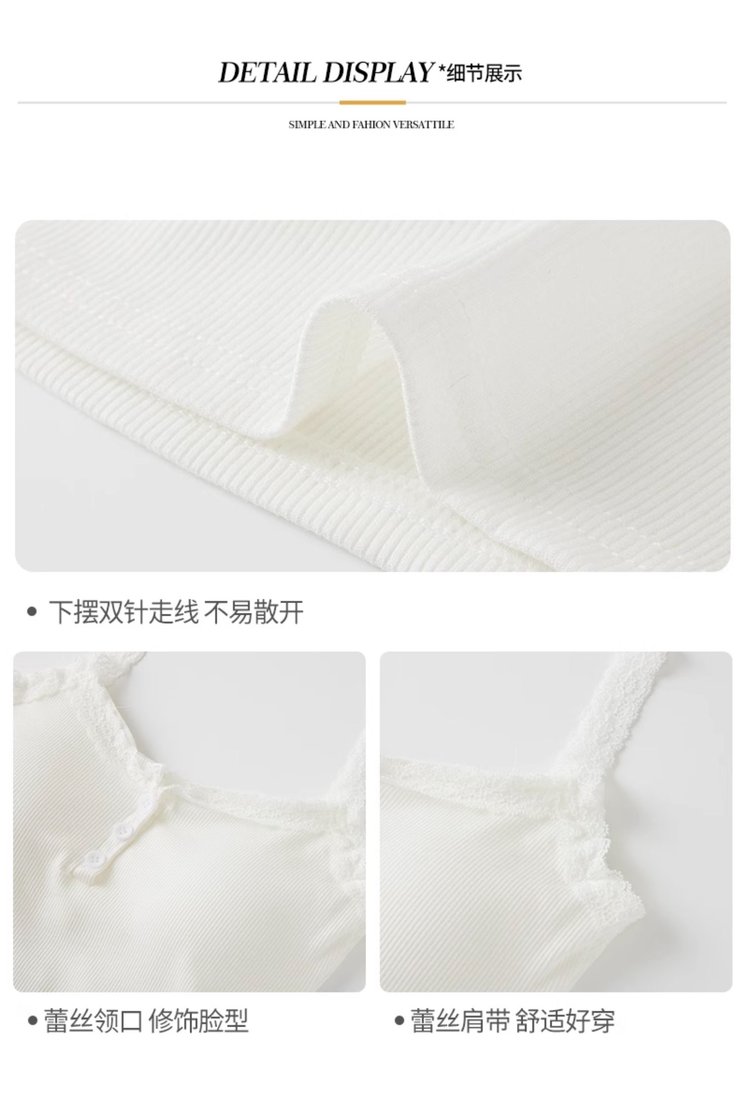 Белый кружевной топ на бретелях для женщин, летний сладкий и пикантный облегающий внутренний топ с прокладками для ношения снаружи