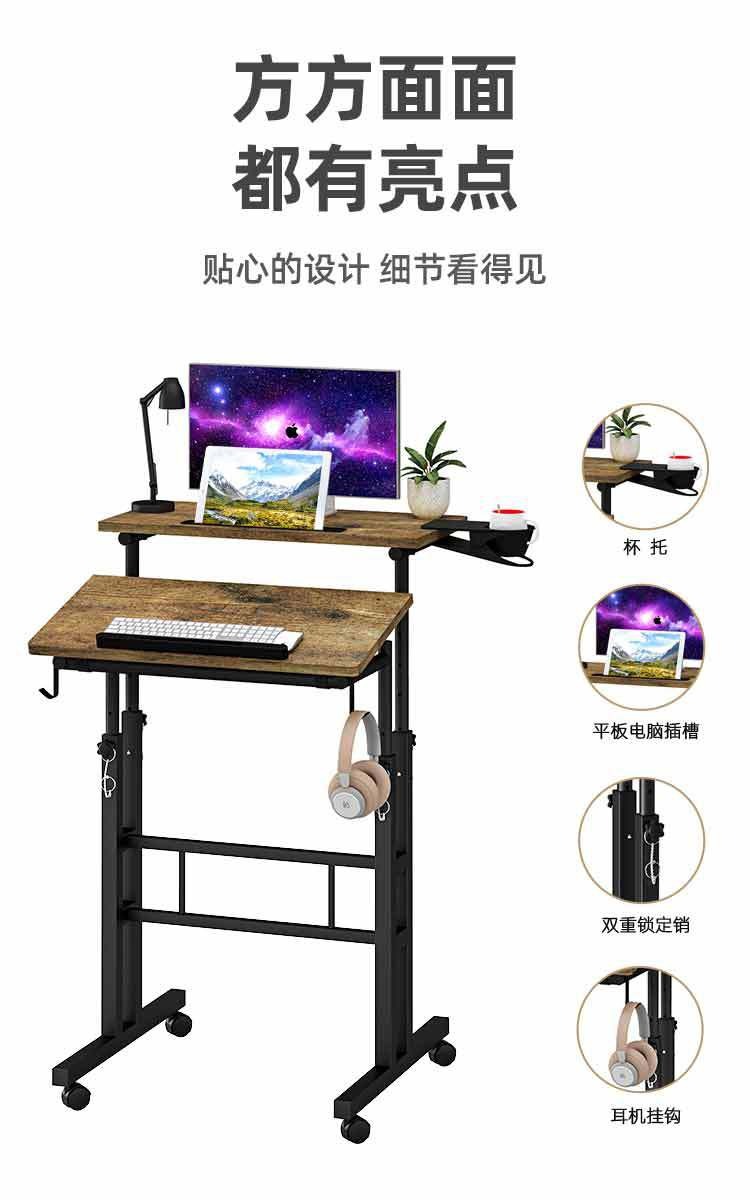 Компьютерный стол с регулировкой высоты, мобильный на колесах, ретро стоячий офисный стол для беговой дорожки, стол для велоспорта, оптовая настройка